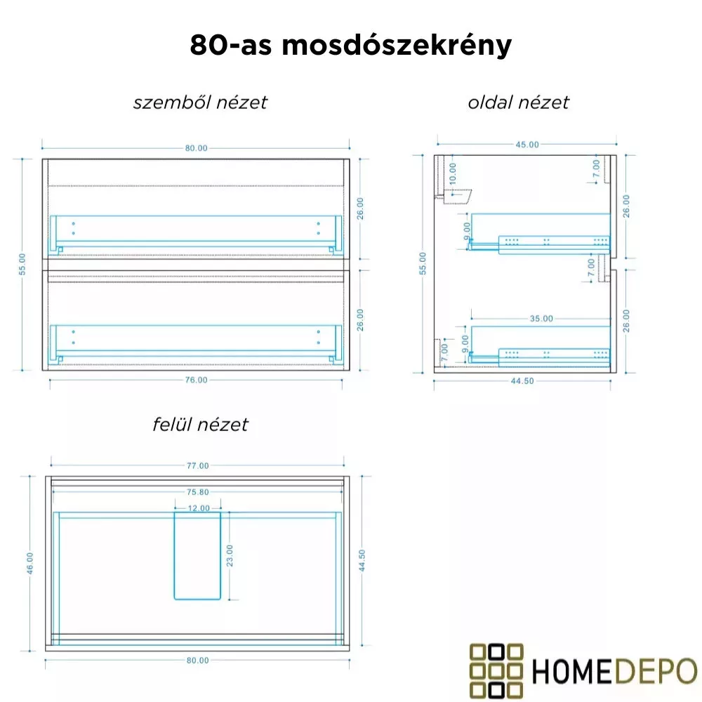 • Mosdószekrény méret: 80x55x46 cm