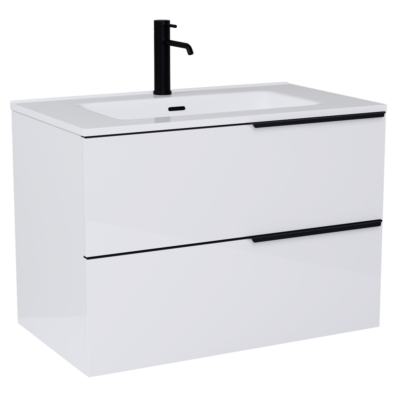 Cremona Lacquer White 80 komplett fürdőszoba bútor szett, matt fekete fogantyúkkal