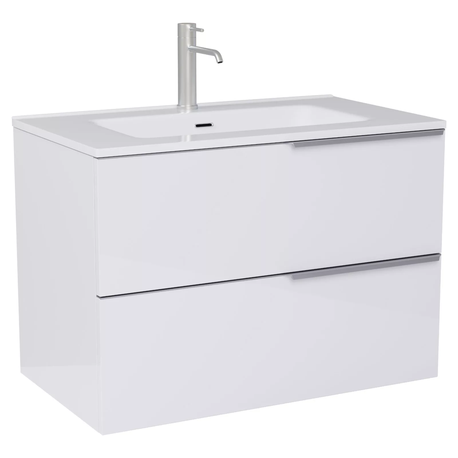• fényes fehér mosdószerkény, teljes kihúzhatóságú fiókokkal
