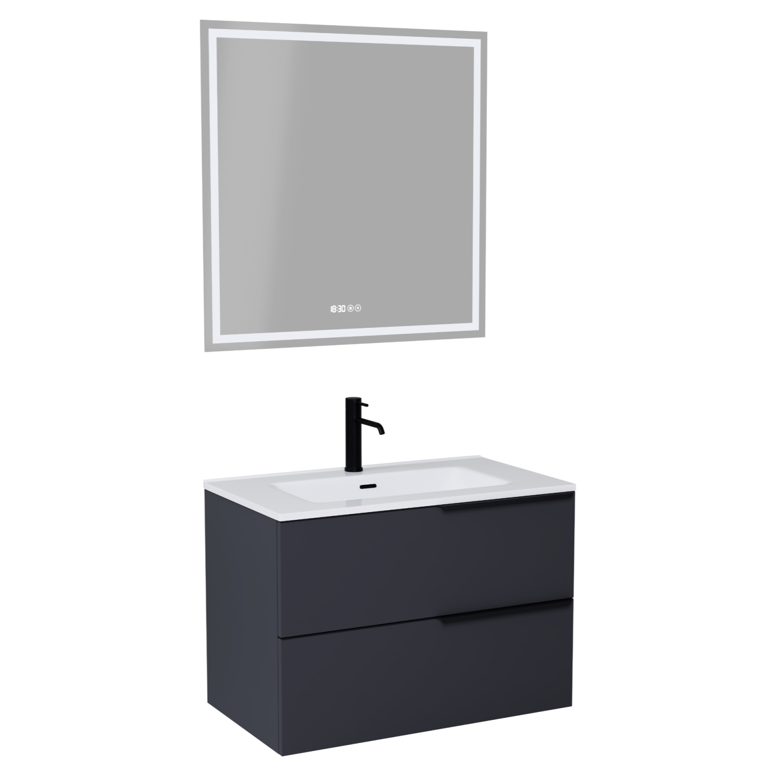 HD Cremona Matt Antracit 60/80 komplett fürdőszoba bútor fali mosdószekrénnyel, matt fekete fogantyúkkal és tükörrel
