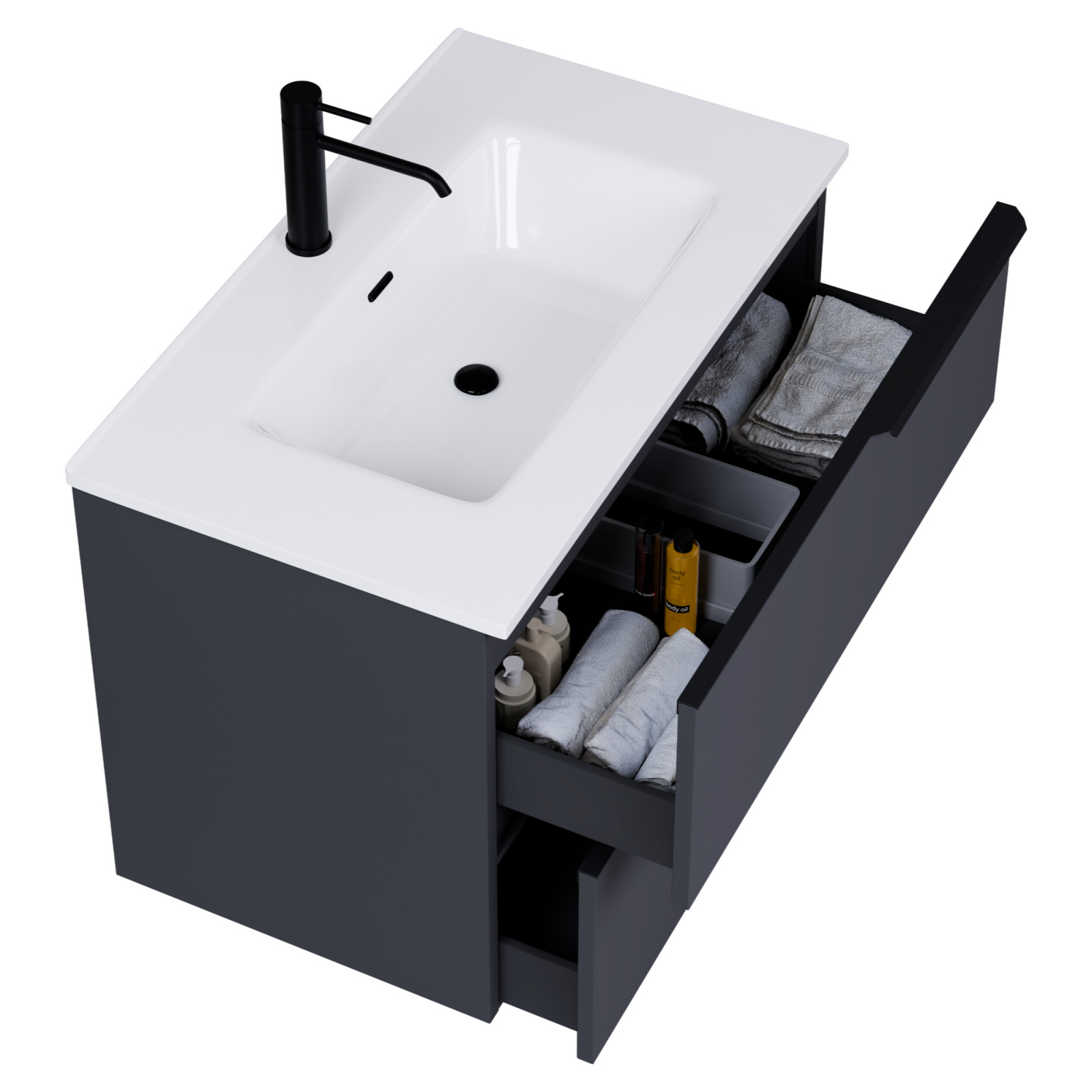 Cremona Matt Antracit 80 komplett fürdőszoba bútor szett, matt fekete fogantyúkkal