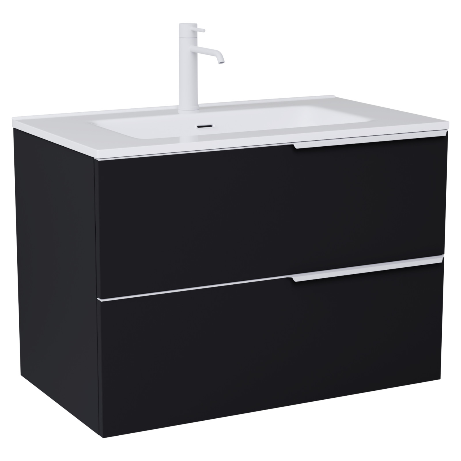 HD Cremona Matt Black 60 fali mosdószekrény matt fehér fogantyúkkal és fényes fehér slim mosdóval