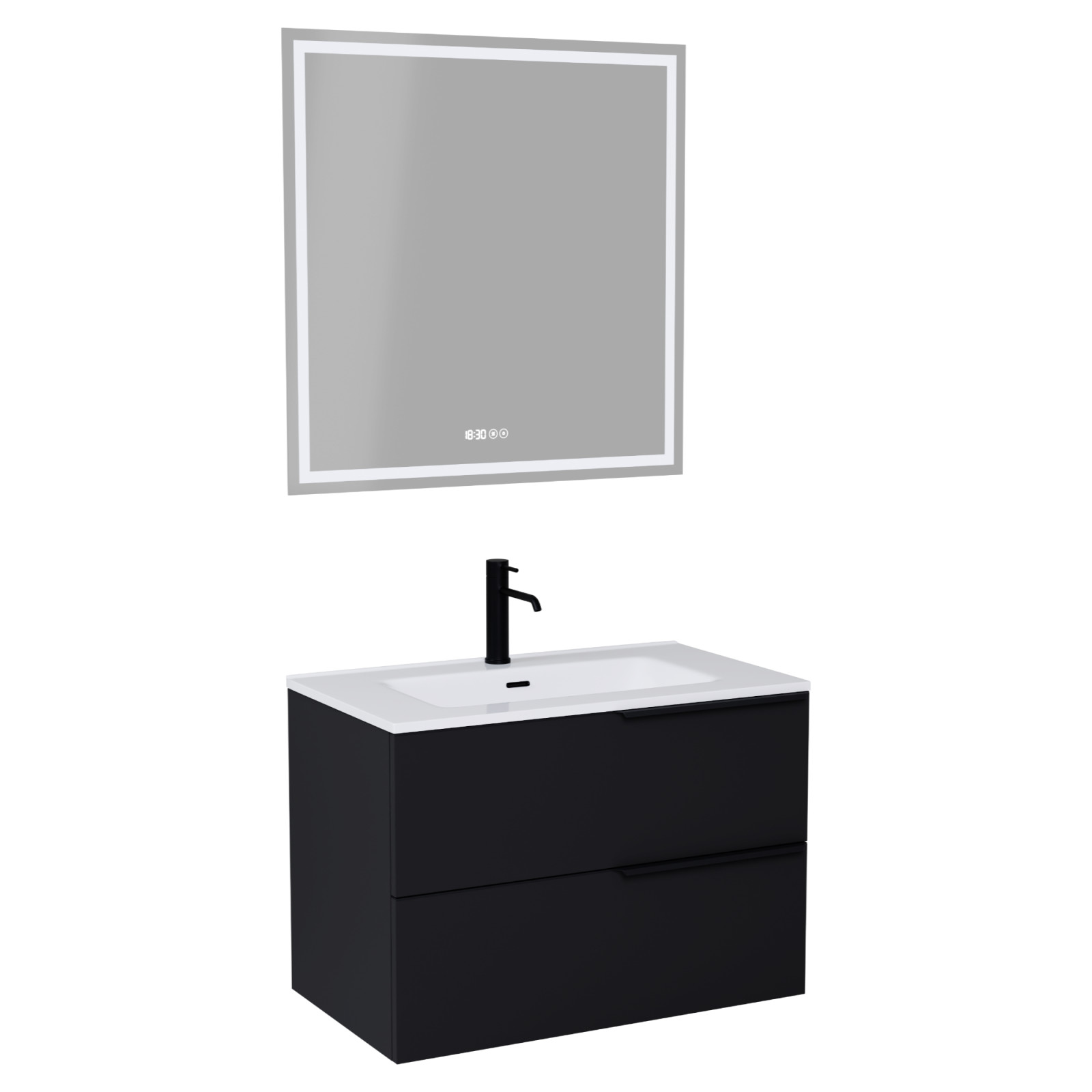 HD Cremona Matt Black 60/80 komplett fürdőszoba bútor fali mosdószekrénnyel, matt fekete fogantyúkkal és tükörrel