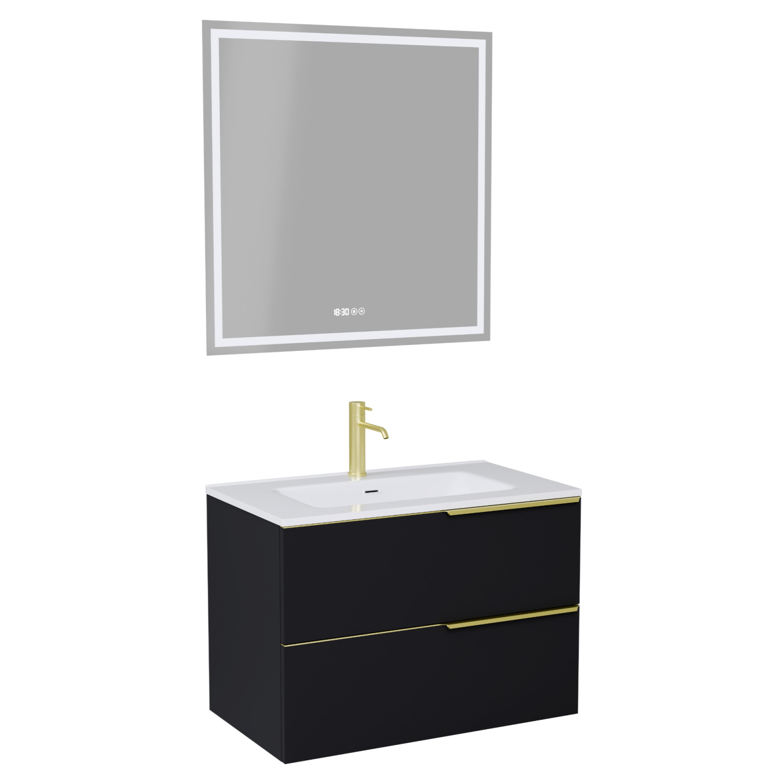 Cremona Matt Black 60 komplett fürdőszoba bútor, szálcsiszolt arany fogantyúkkal