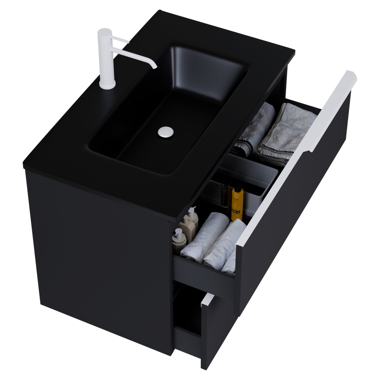 HD Cremona Matt Black 80 fali mosdószekrény matt fehér fogantyúkkal és matt fekete slim mosdóval