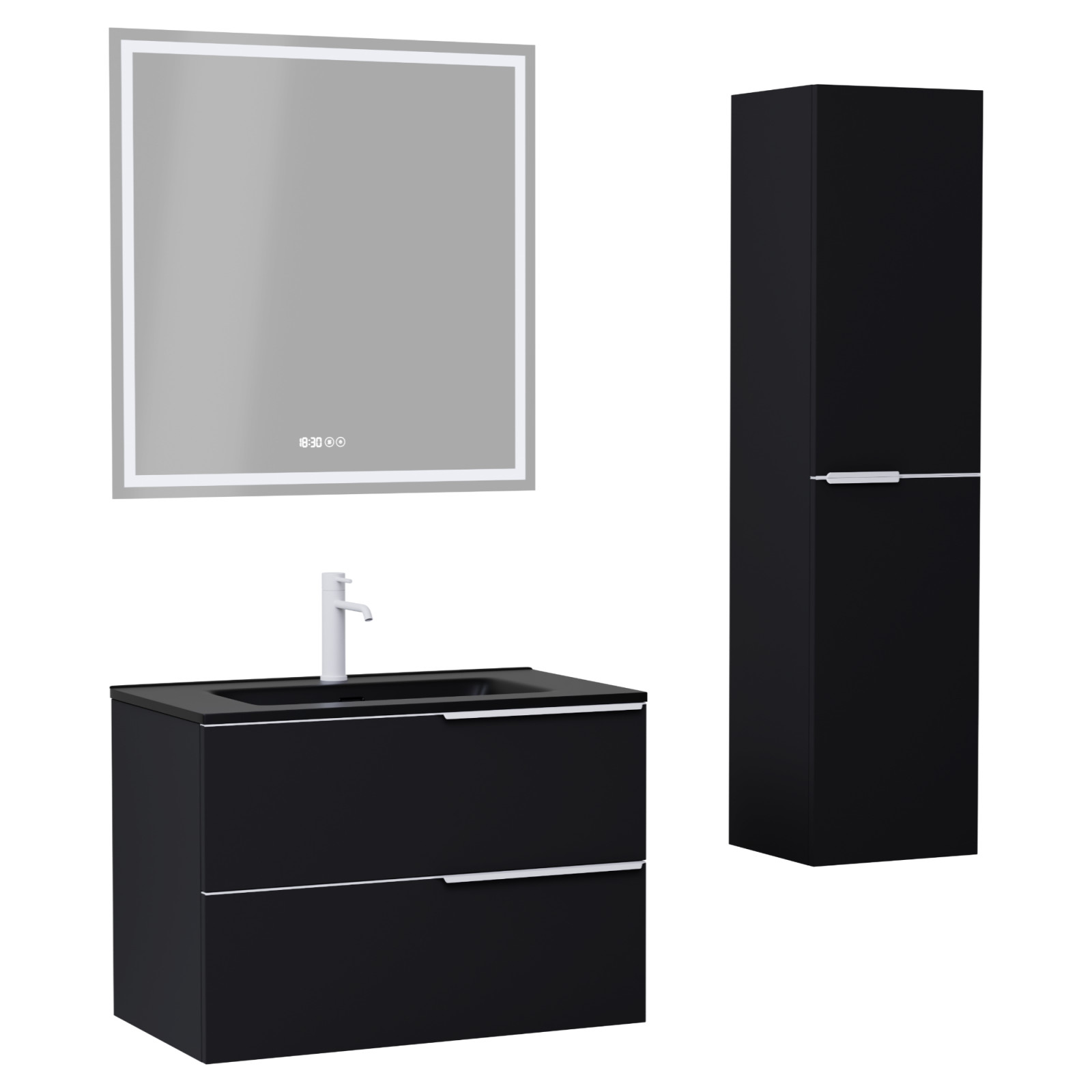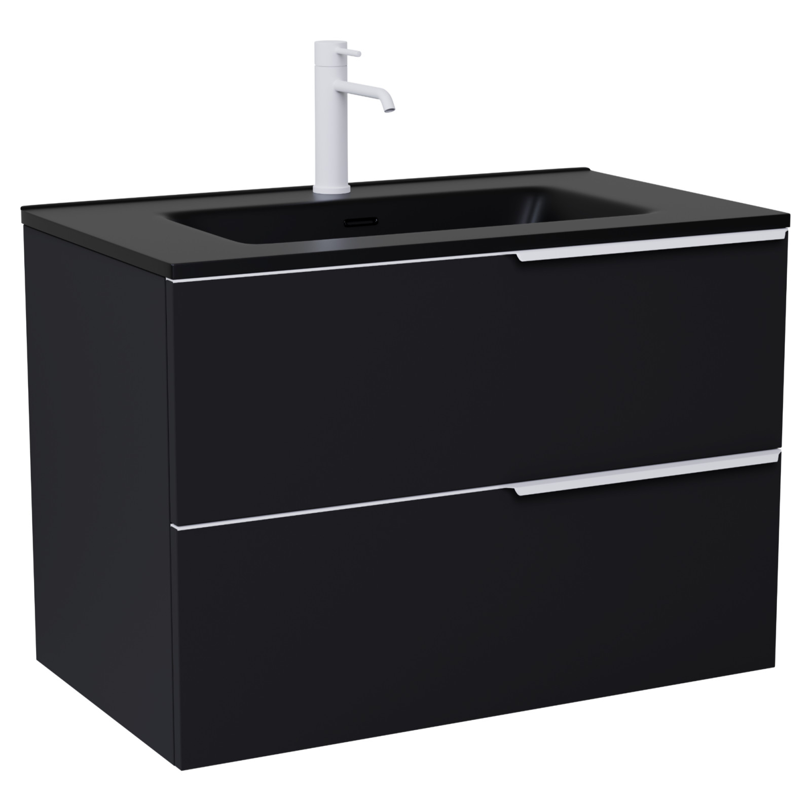Cremona Matt Black 80 komplett fürdőszoba bútor szett, matt fehér fogantyúkkal