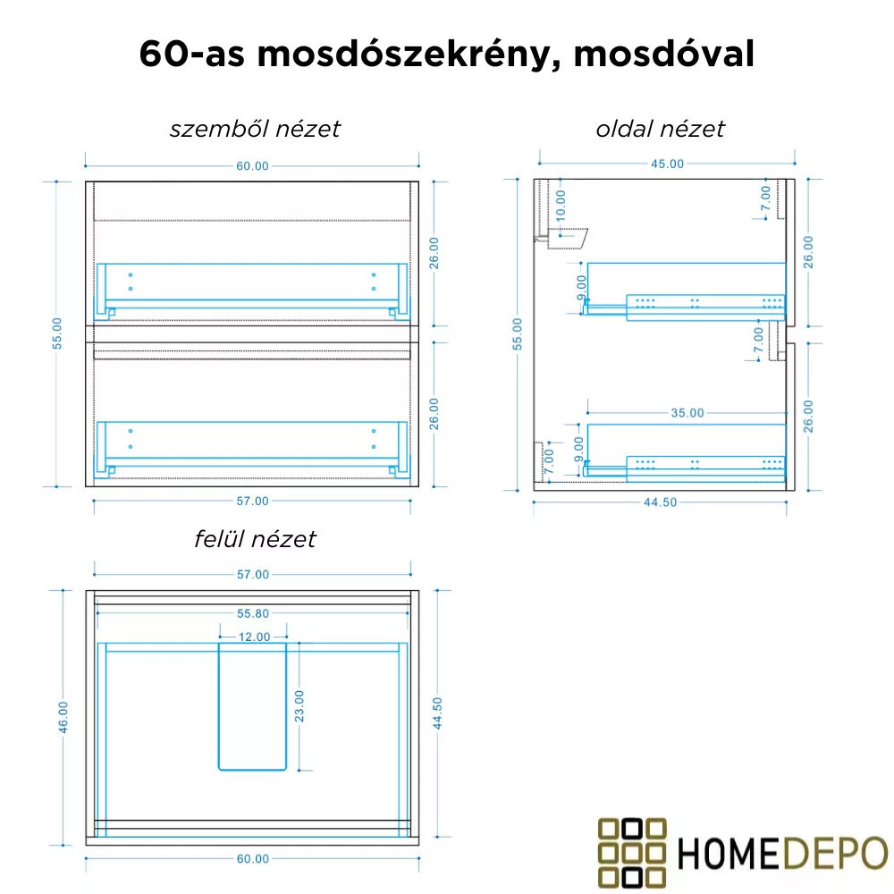 • Mosdószekrény méret: 60x55x46 cm
