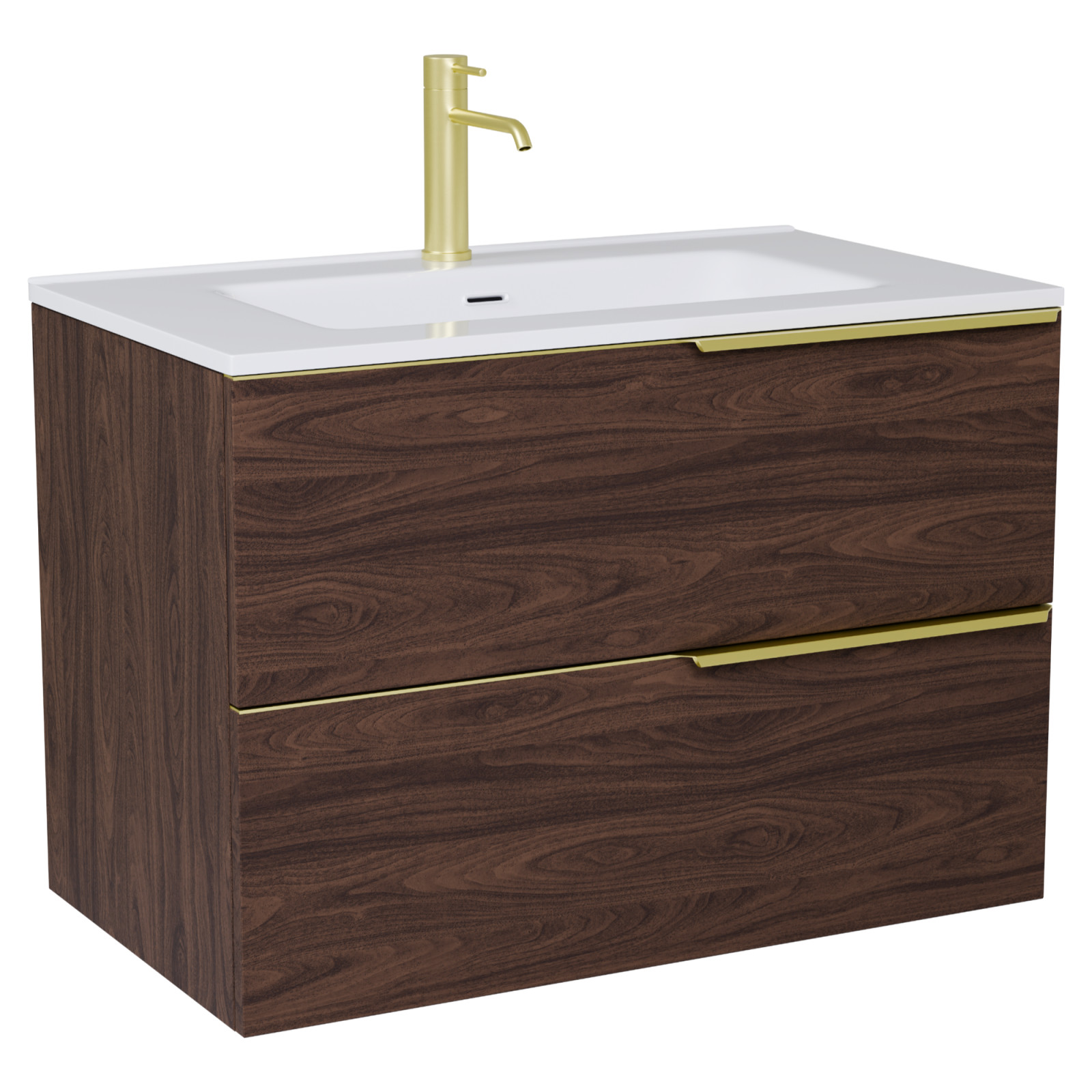 Cremona Matt Hazel 80 komplett fürdőszoba bútor szett, szálcsiszolt arany fogantyúkkal