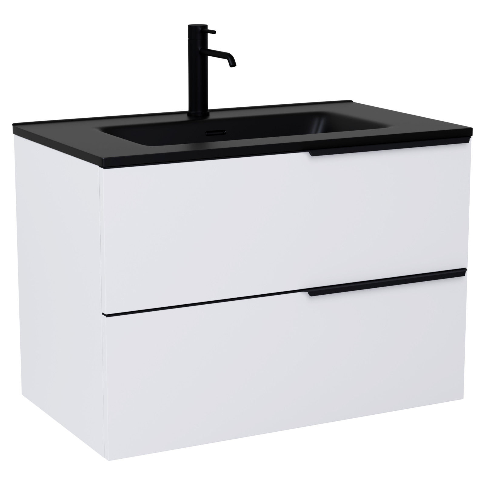 HD Cremona Matt White 60 fali mosdószekrény matt fekete fogantyúkkal és matt fekete slim mosdóval