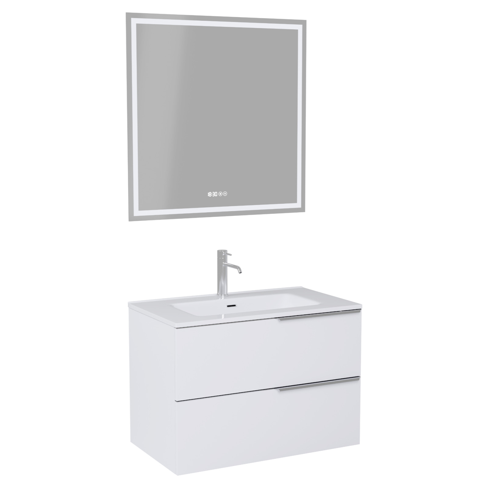 HD Cremona Matt White 60 komplett fürdőszoba bútor fali mosdószekrénnyel, fényes króm fogantyúkkal és tükörrel
