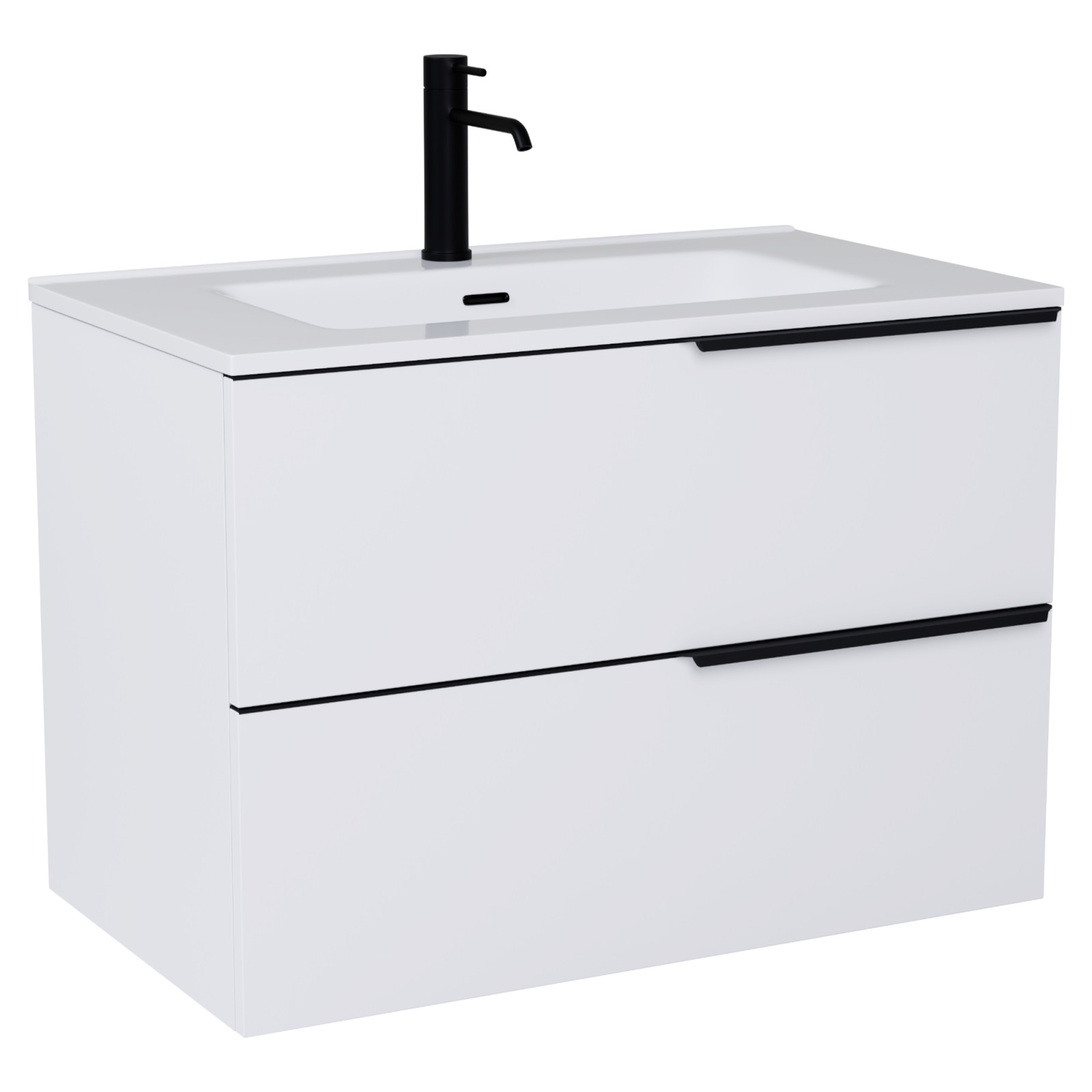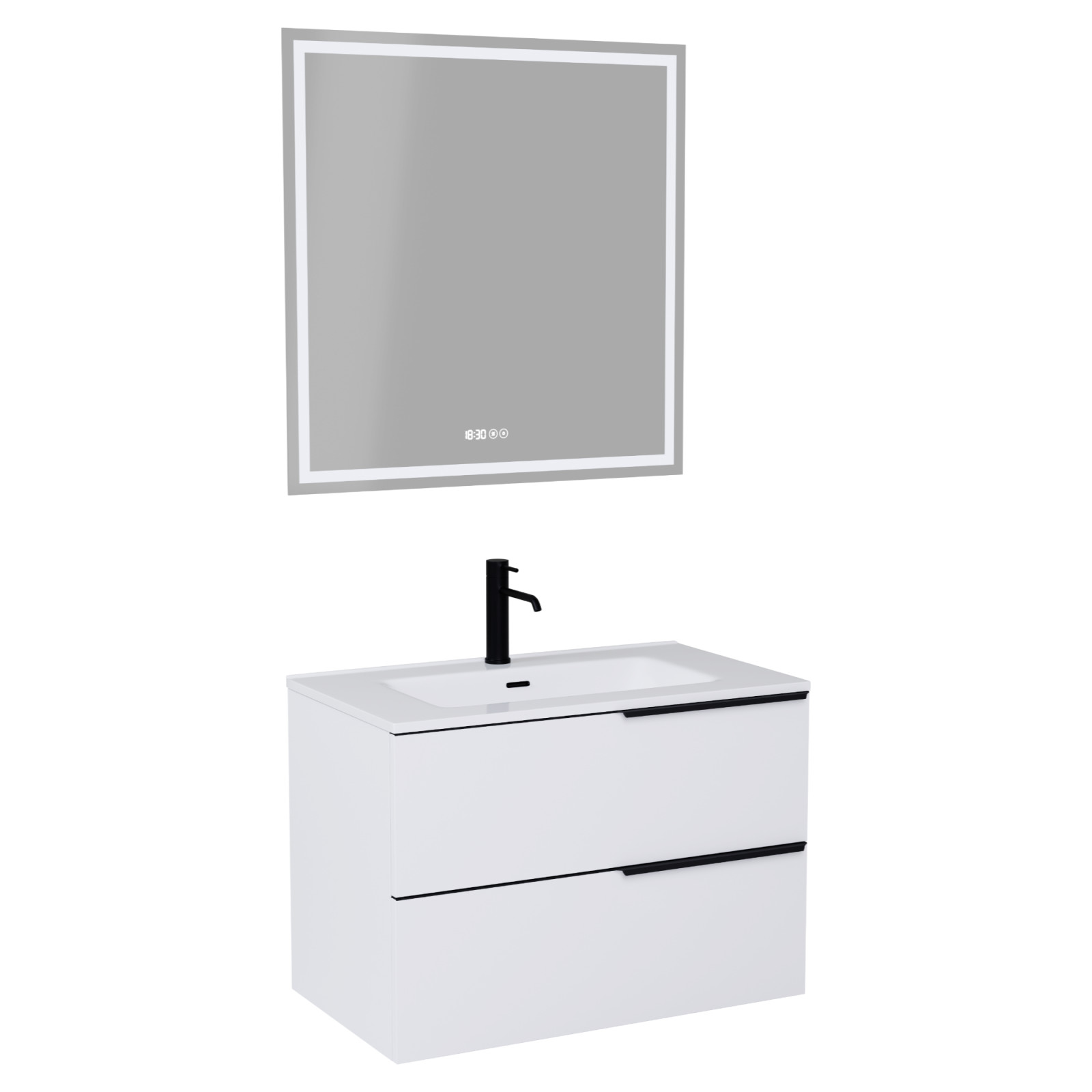 HD Cremona Matt White 60/80 komplett fürdőszoba bútor fali mosdószekrénnyel, matt fekete fogantyúkkal és tükörrel