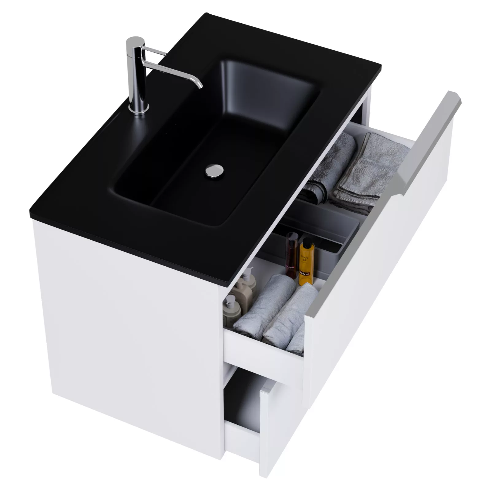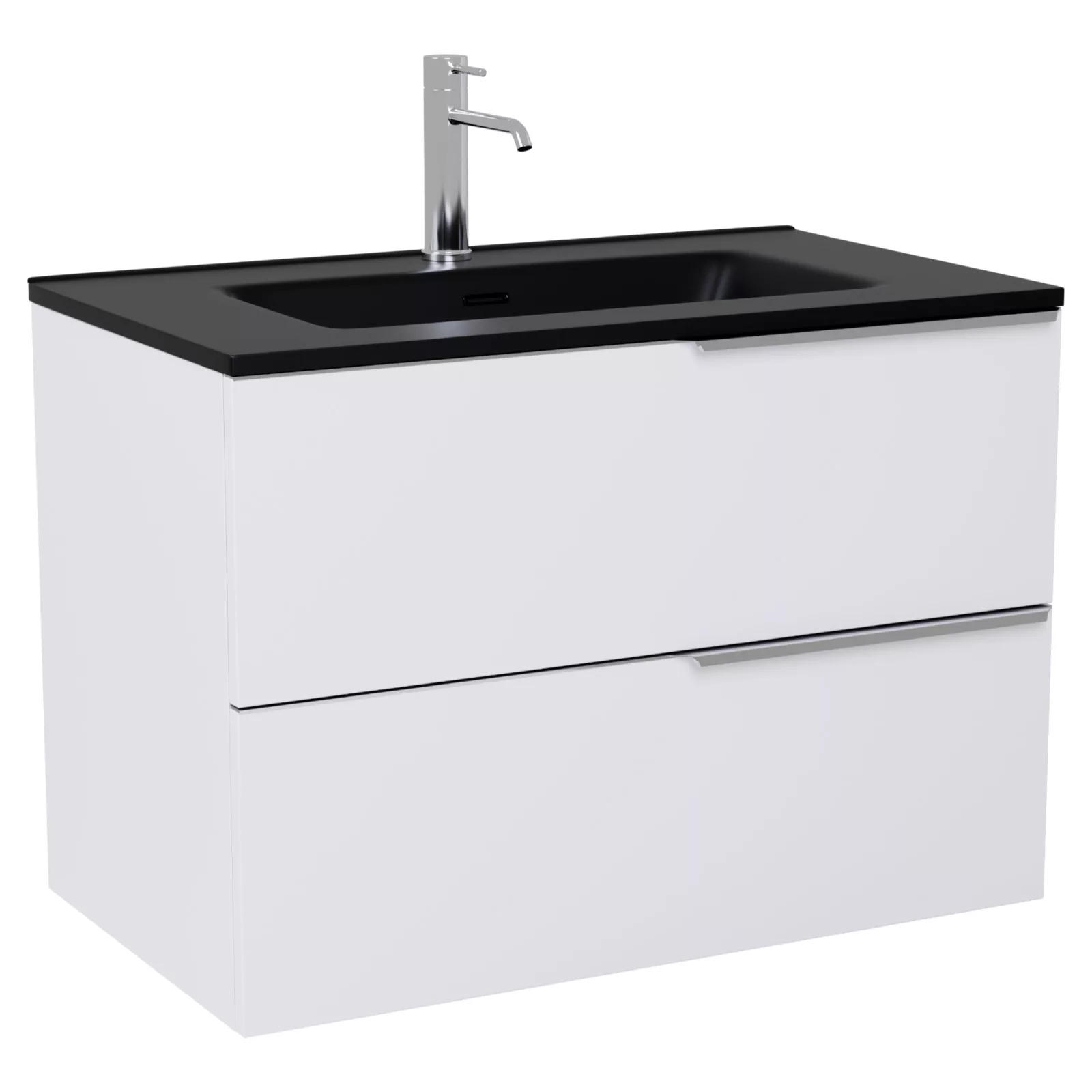 Cremona Matt White 60 komplett fürdőszoba bútor szett, matt fekete fogantyúkkal