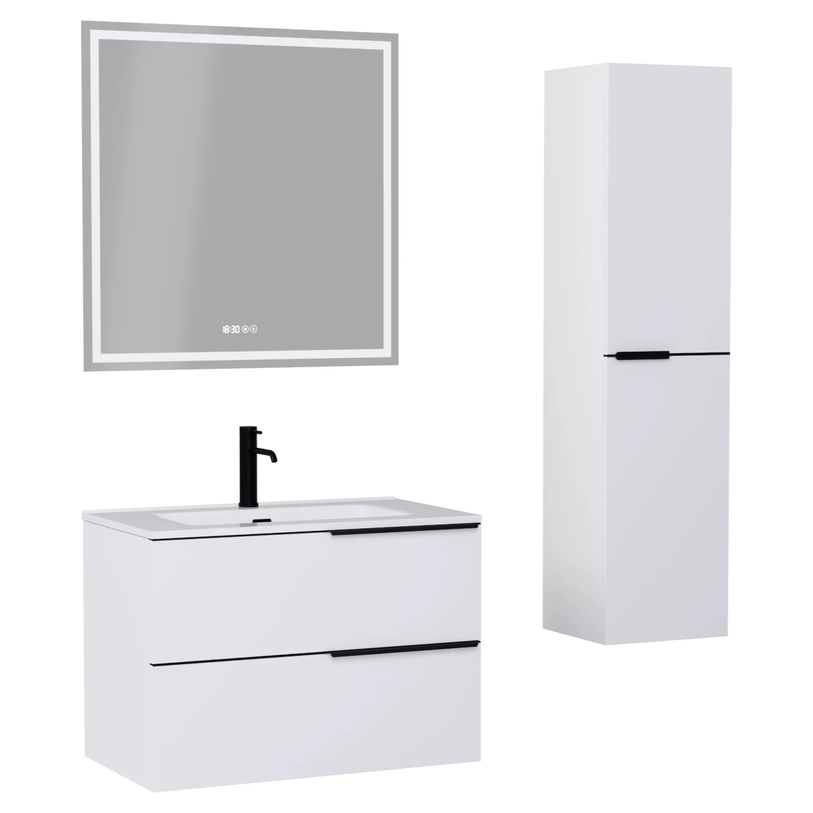 Napjainkban a praktikum mellett a fürdőszoba esztétikus megjelenése is fontos szempont. A függesztett bútorok egyre elterjedtebbé válnak, mivel számos előnnyel rendelkeznek, ide sorolható a modern, könnyed megjelenés és az egyszerű tisztítás . A függesztett fürdőszobai bútorok a klasszikus és modernebb stílusú fürdőszobákban is megállják a helyüket egyaránt. Nagyfokú rugalmasság jellemzi őket, mivel szinte bárhol elhelyezhetők a fürdőszobán belül. További előnyük, hogy soft close (csillapítós) zsanérral felszereltek, így becsukáskor az ajtó vagy fiók finoman záródik be, csökkentve a terhelést és növelve az élettartamot . A szekrény fehér és matt fekete mosdóval, illetve mosdópulttal is szabadon kombinálható ízlés szerint. A teljesség érdekében a mosdószekrényekhez illő LED okostükröt és magasszekrényt is választhatunk, hogy a fürdőszobában lévő bútorok egy szemet gyönyörködtető egységet alkossanak.