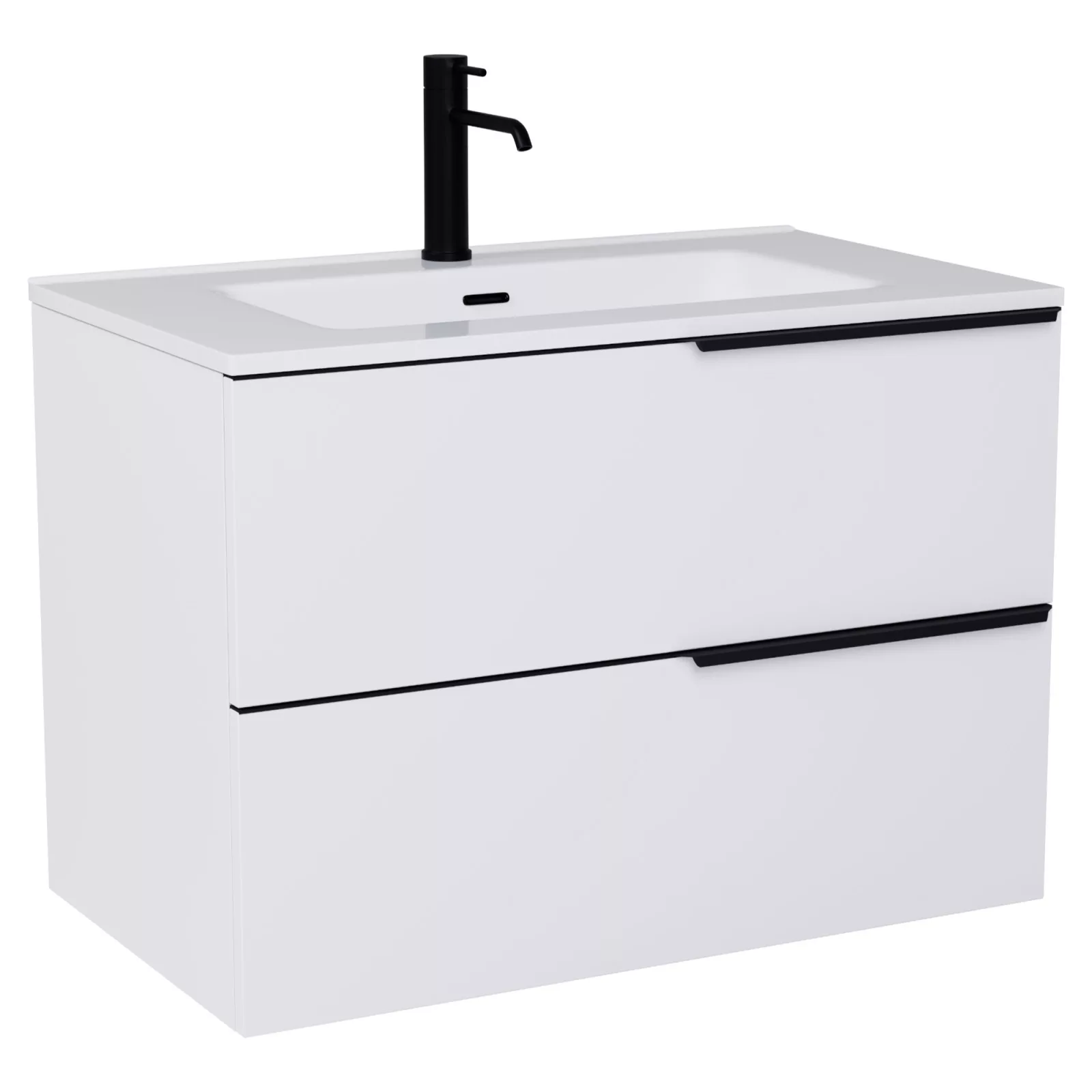 Cremona Matt White 60 komplett fürdőszoba bútor szett, matt fekete fogantyúkkal