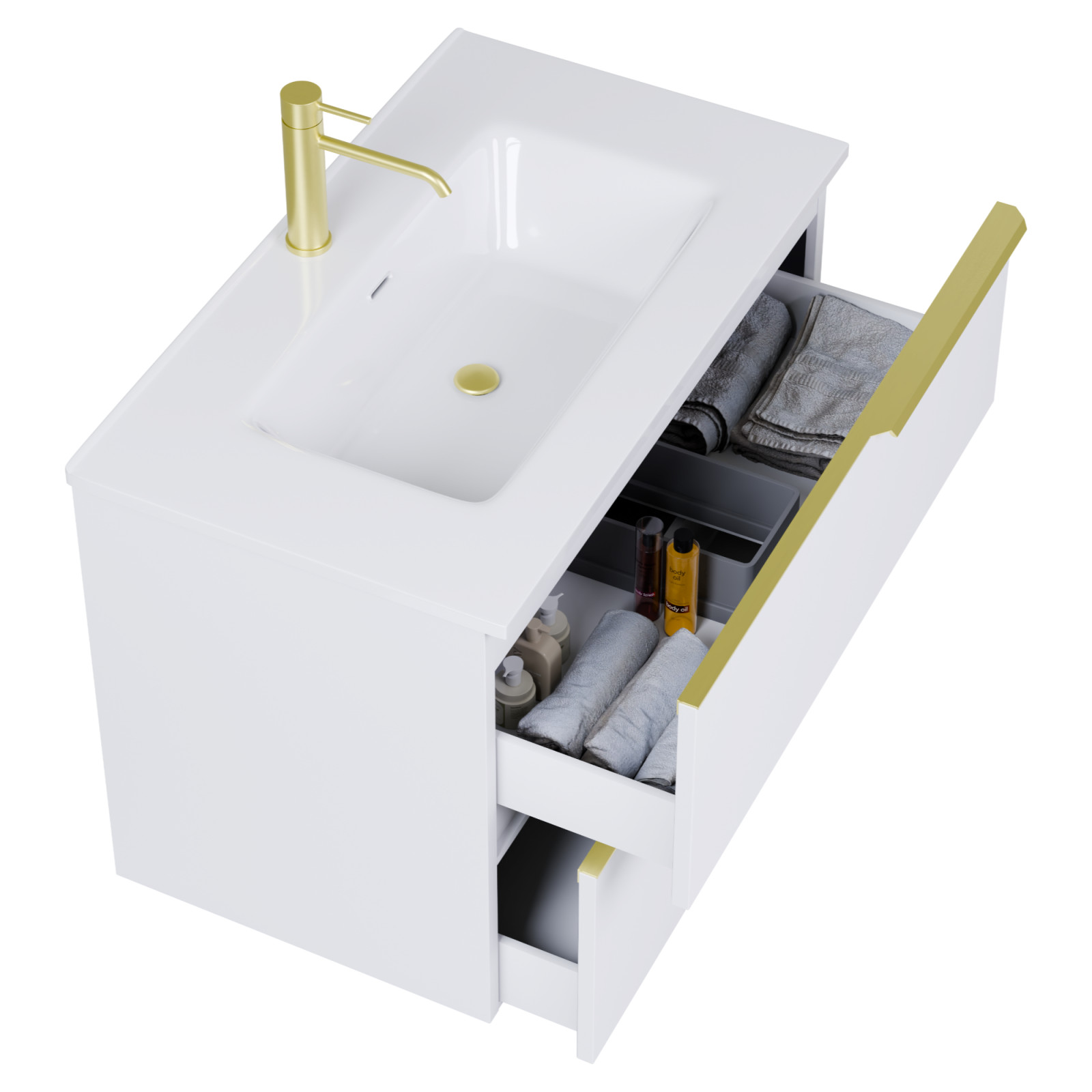 Cremona Matt White 80 komplett fürdőszoba bútor szett, szálcsiszolt arany fogantyúkkal