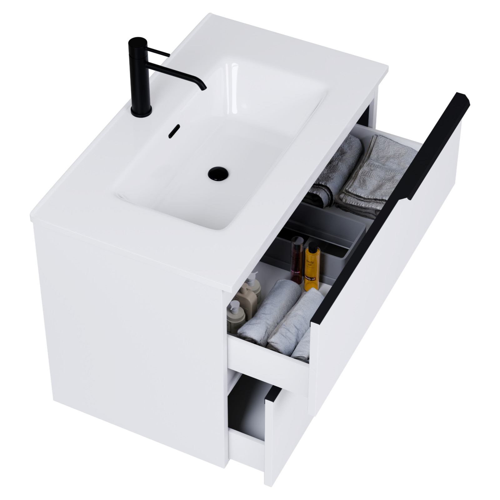 Cremona Matt White 80 komplett fürdőszoba bútor szett, matt fekete fogantyúkkal