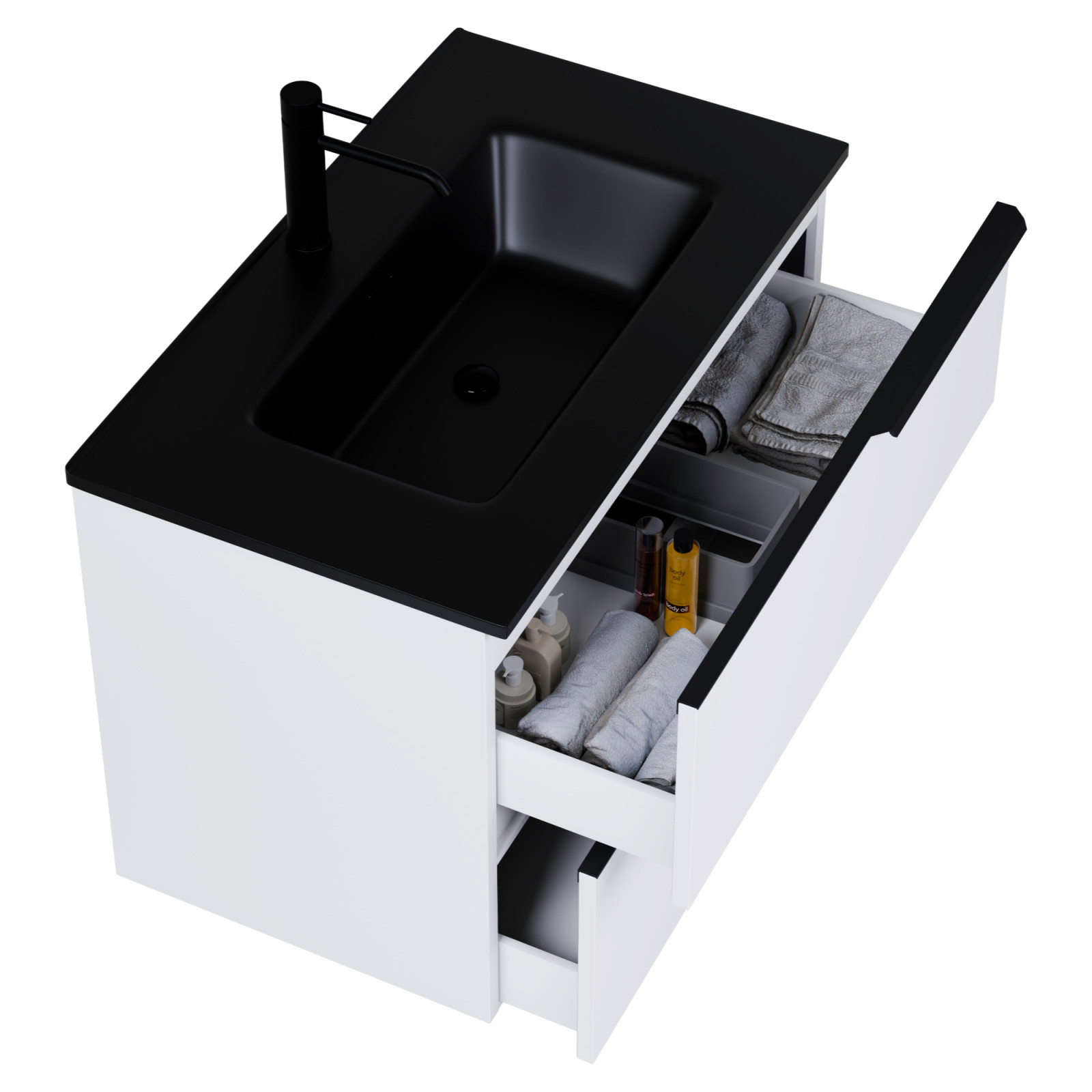 Cremona Matt White 80 komplett fürdőszoba bútor szett, matt fekete fogantyúkkal