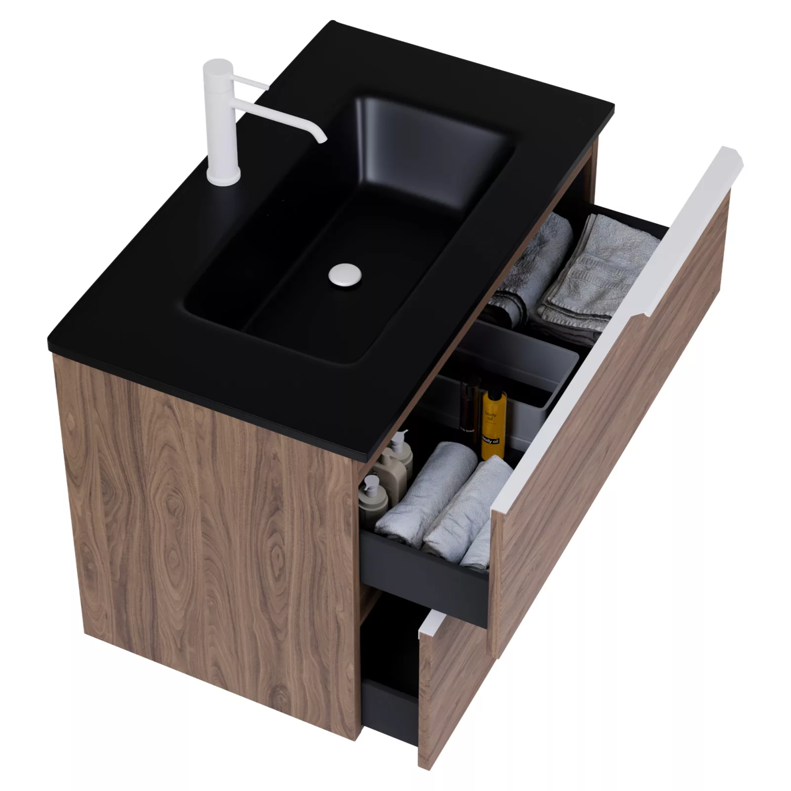 Napjainkban a praktikum mellett a fürdőszoba esztétikus megjelenése is fontos szempont. A függesztett bútorok egyre elterjedtebbé válnak, mivel számos előnnyel rendelkeznek, ide sorolható a modern, könnyed megjelenés és az egyszerű tisztítás . A függesztett fürdőszobai bútorok a klasszikus és modernebb stílusú fürdőszobákban is megállják a helyüket egyaránt. Nagyfokú rugalmasság jellemzi őket, mivel szinte bárhol elhelyezhetők a fürdőszobán belül. További előnyük, hogy soft close (csillapítós) zsanérral felszereltek, így becsukáskor az ajtó vagy fiók finoman záródik be, csökkentve a terhelést és növelve az élettartamot . A szekrény fehér és matt fekete mosdóval, illetve mosdópulttal is szabadon kombinálható ízlés szerint. A teljesség érdekében a mosdószekrényekhez illő LED okostükröt és magasszekrényt is választhatunk, hogy a fürdőszobában lévő bútorok egy szemet gyönyörködtető egységet alkossanak.