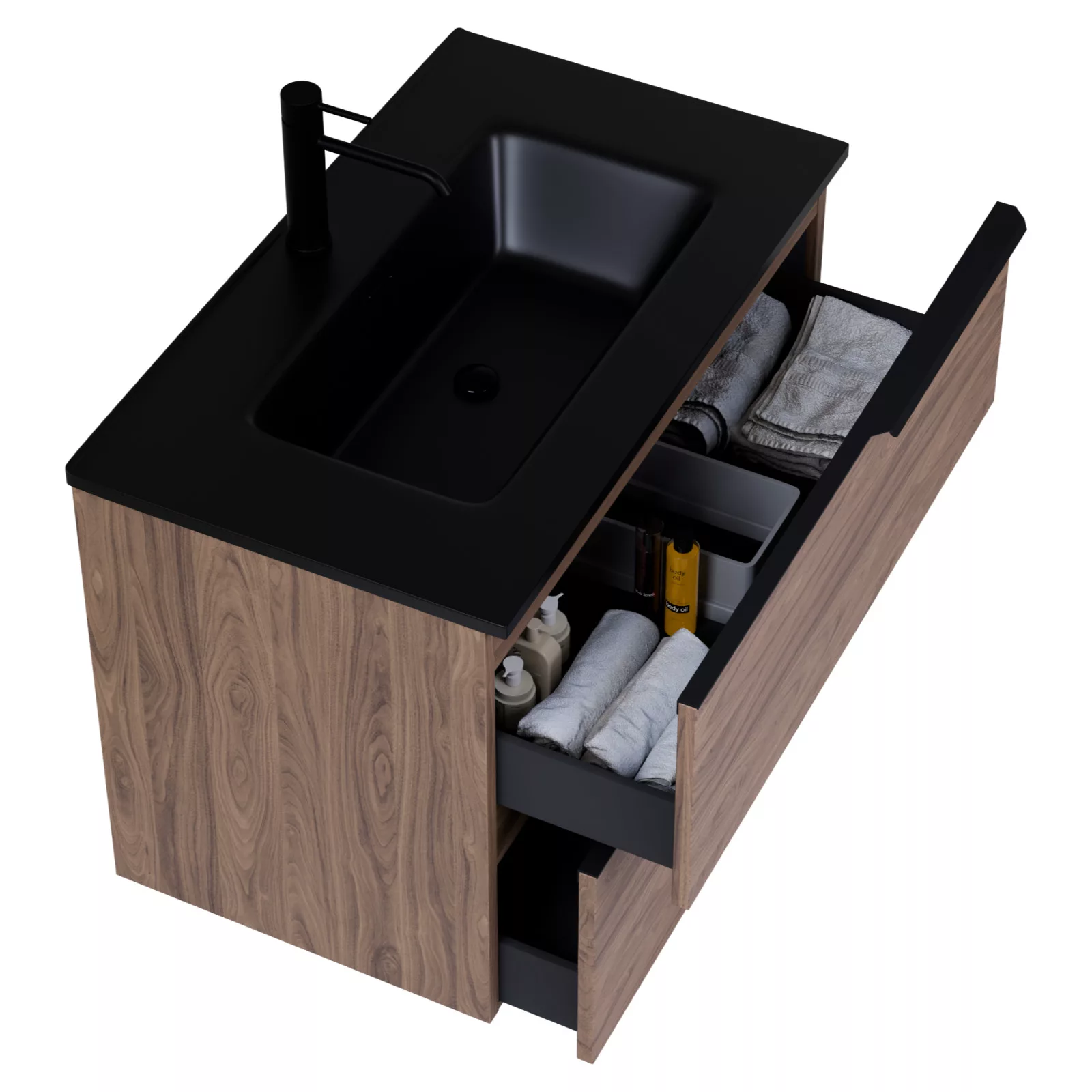 Cremona Oak 60 komplett fürdőszoba bútor szett, matt fekete fogantyúkkal