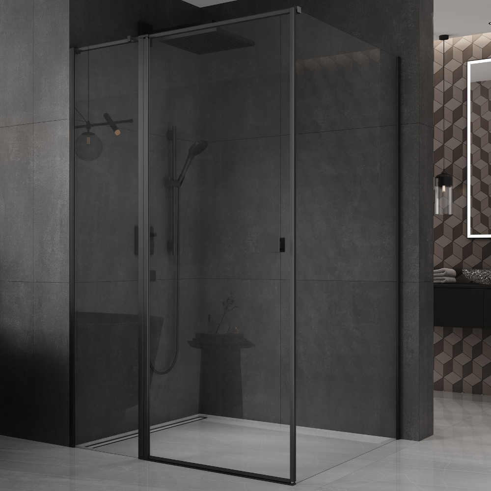 HD Defender "T" Black 120x90 cm szögletes nyílóajtós zuhanykabin fekete színű elemekkel
