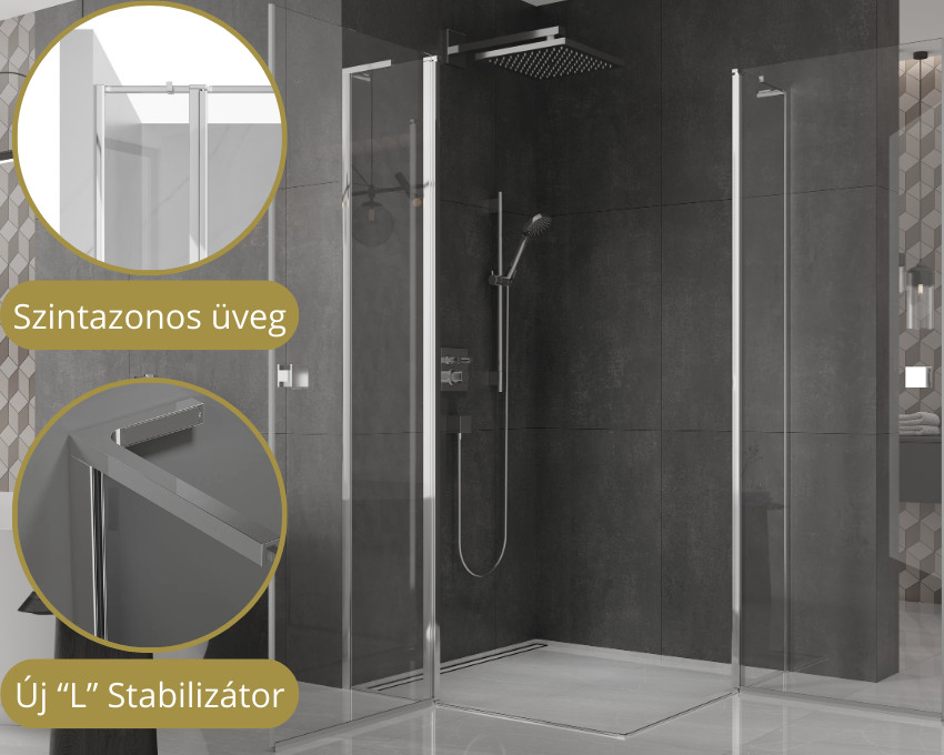 A szögletes forgó profiloknak köszönhetően a zuhanykabinhoz tartozó ajtók nyíló része szabadon nyithatóak kifelé, aminek segítségével könnyedén léphetünk be a zuhanytérbe és ki a zuhanyzás végeztével.