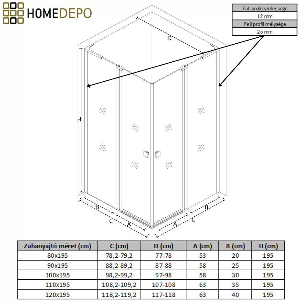 - Fali profil mélysége: Zuhanyajtónál: 25 mm