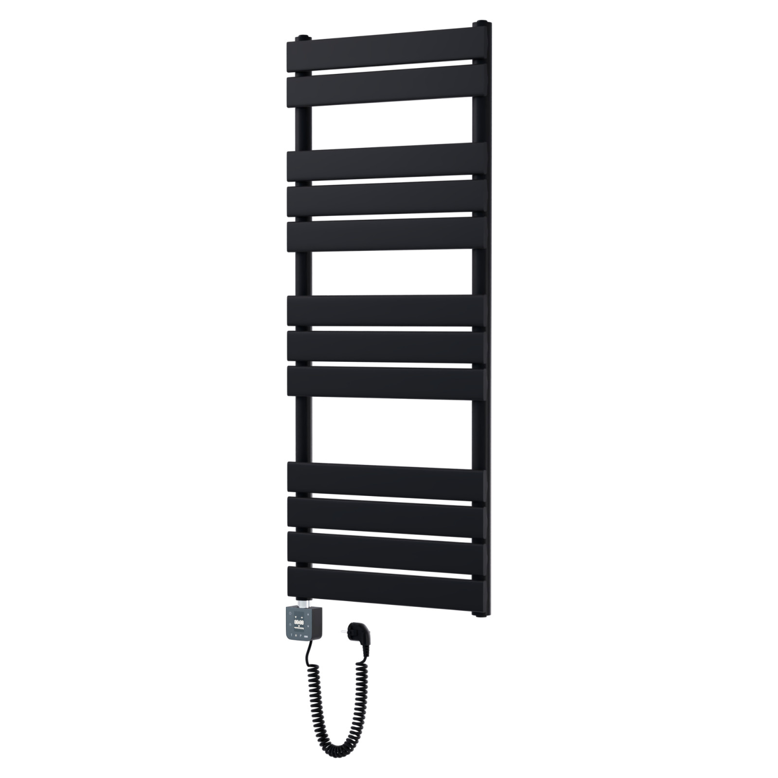 HD Demos Black 1200x500 mm smart elektromos design törölközőszárító radiátor 400W-os wifi-s fűtőpatronnal, matt fekete