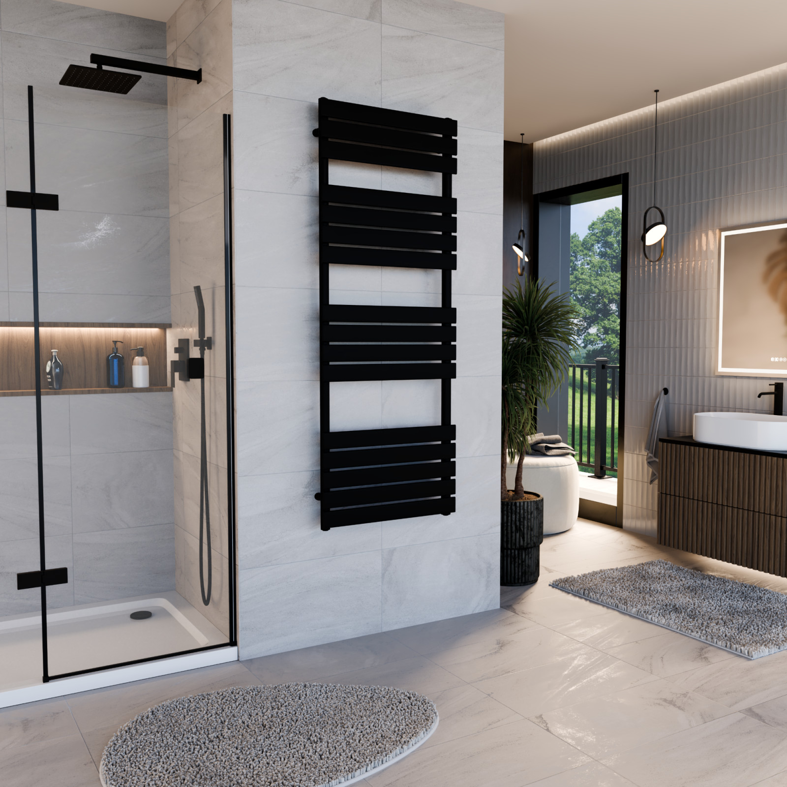A HD Demos fürdőszobai törölközőszárító radiátor modern formavilágának és praktikusságának köszönhetően kiváló választásnak bizonyul. Minimál stílusú, szögletes profilú csőradiátor matt fekete színben magas minőségű acél felhasználásával készül.