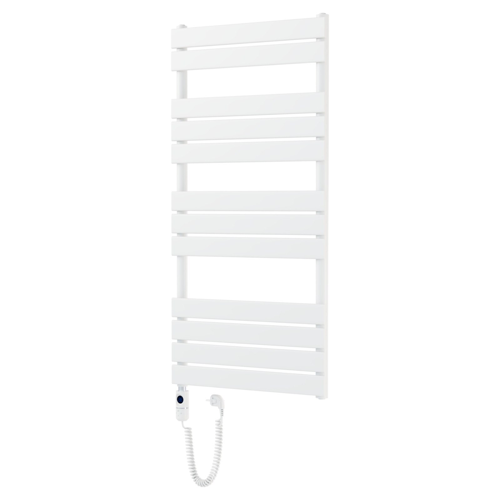 HD Demos White 1200x600 mm elektromos design törölközőszárító radiátor 400W-os fűtőpatronnal, fényes fehér