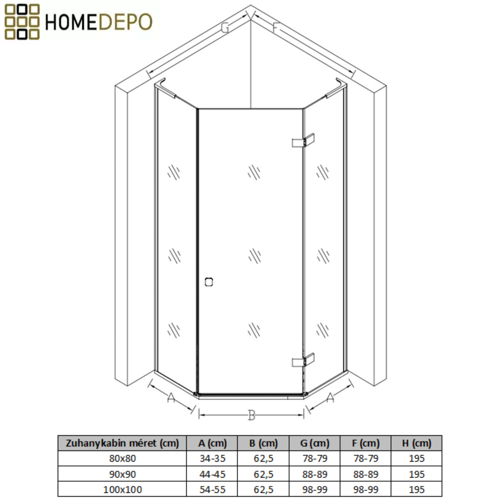 HD Diamond 80x90 szögletes nyílóajtós zuhanykabin króm színben