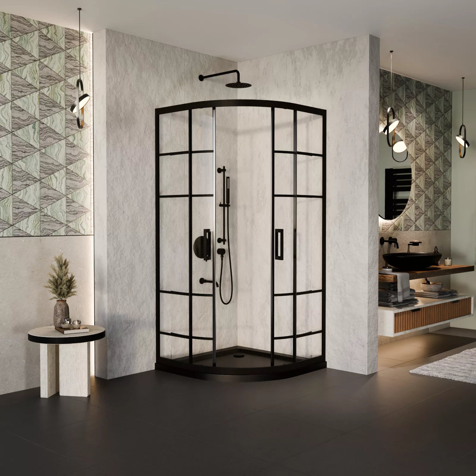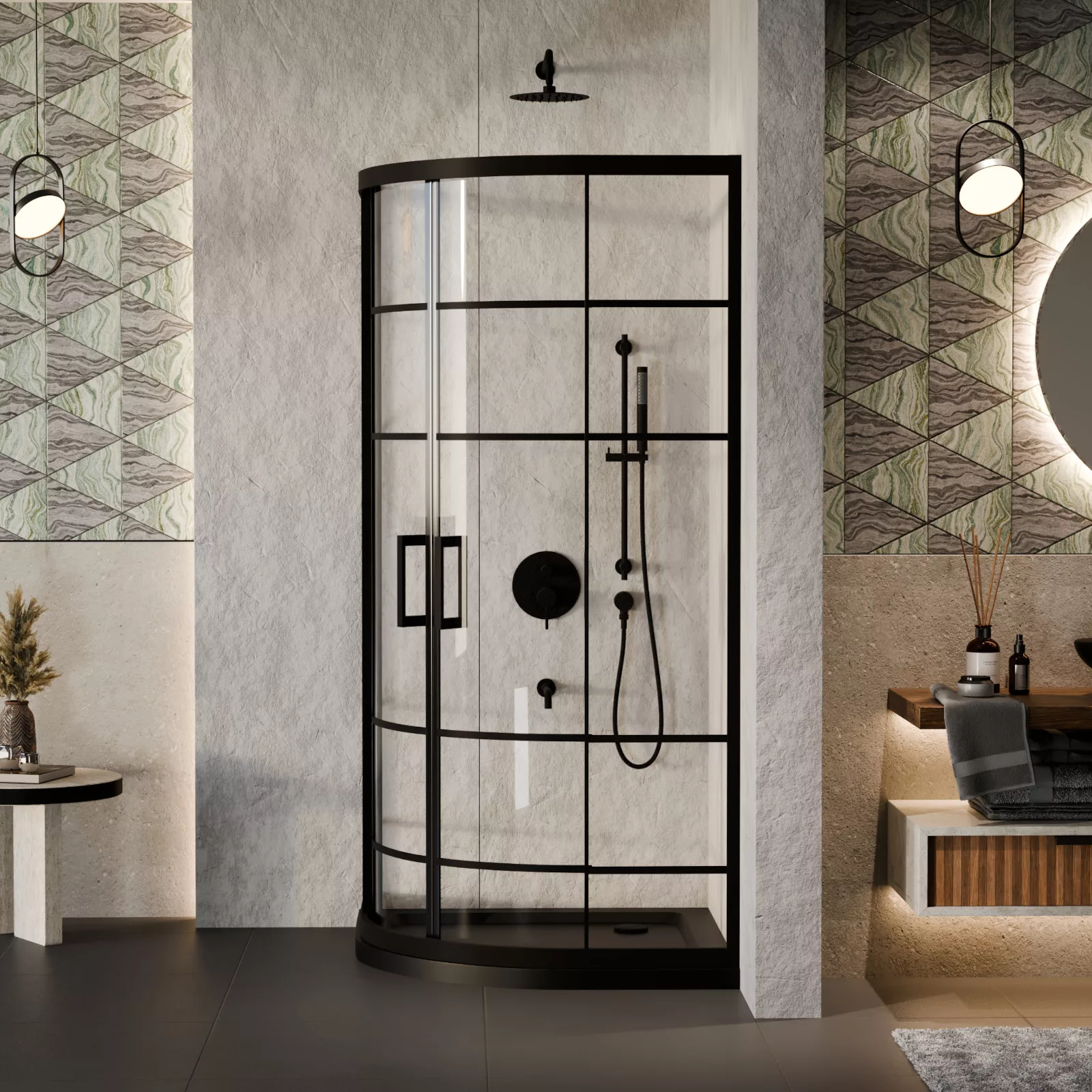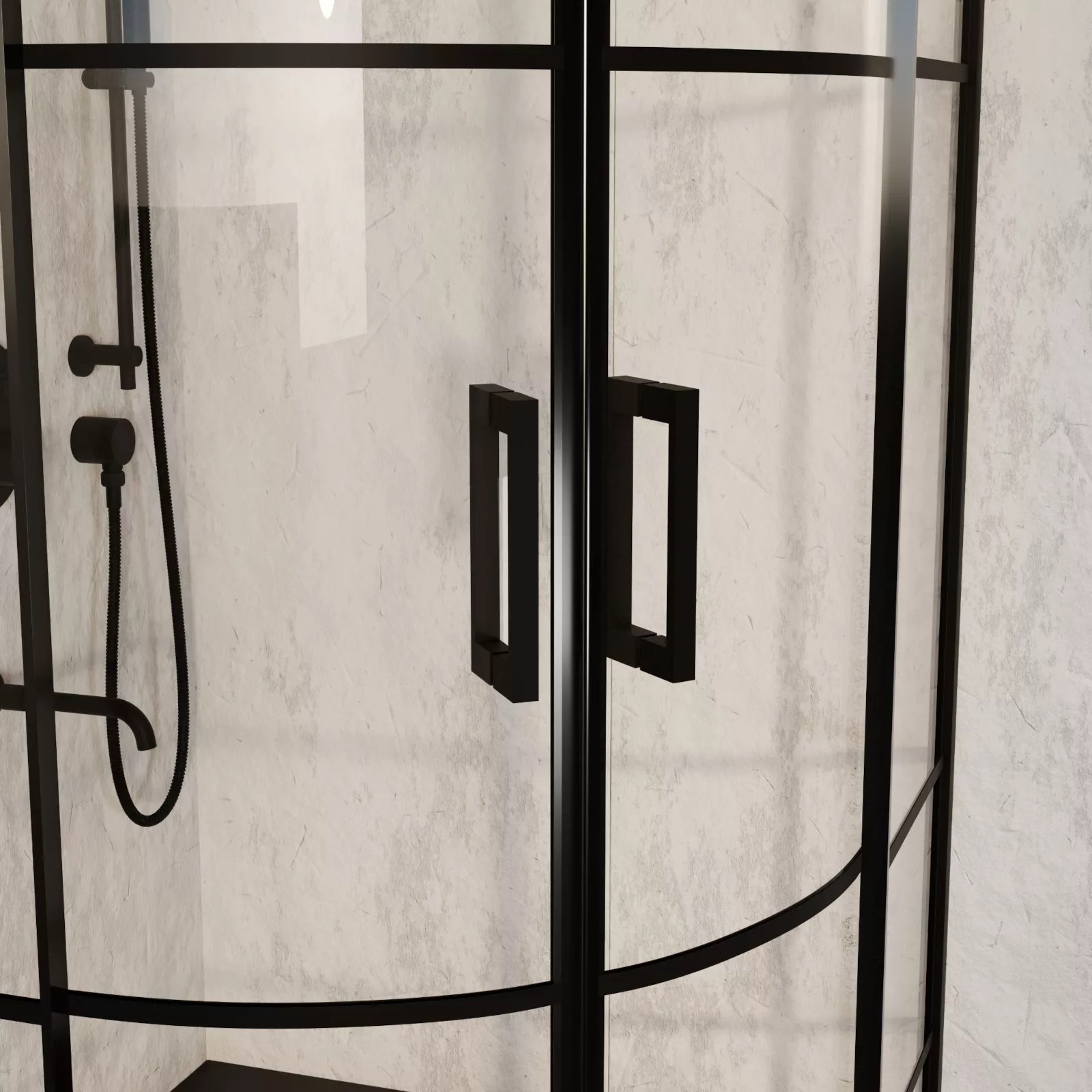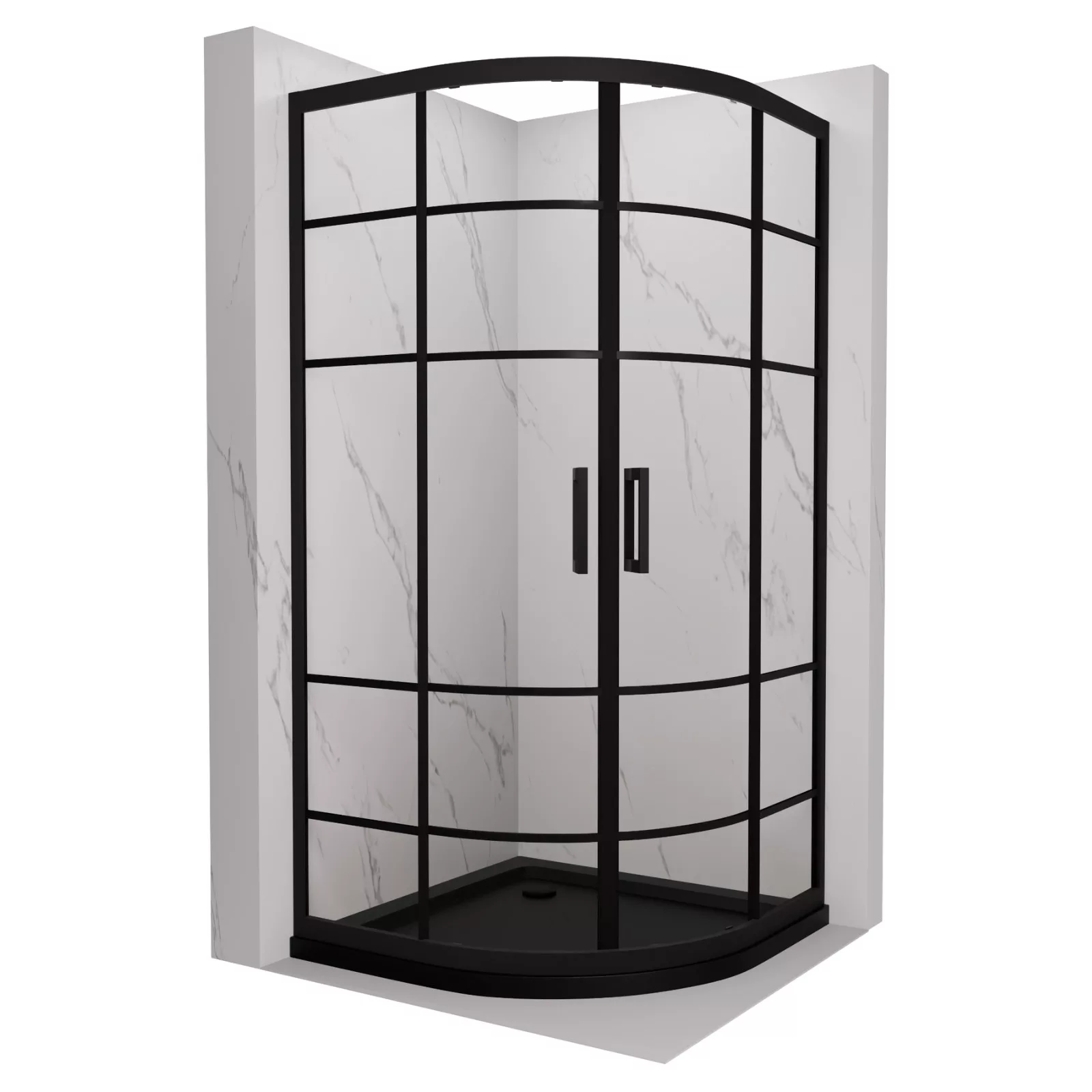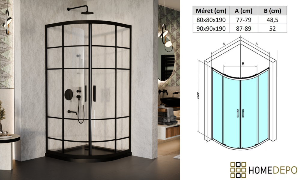 HD Dior 80x80 íves két tolóajtós zuhanykabin fekete slim zuhanytálcával és fekete szifonnal