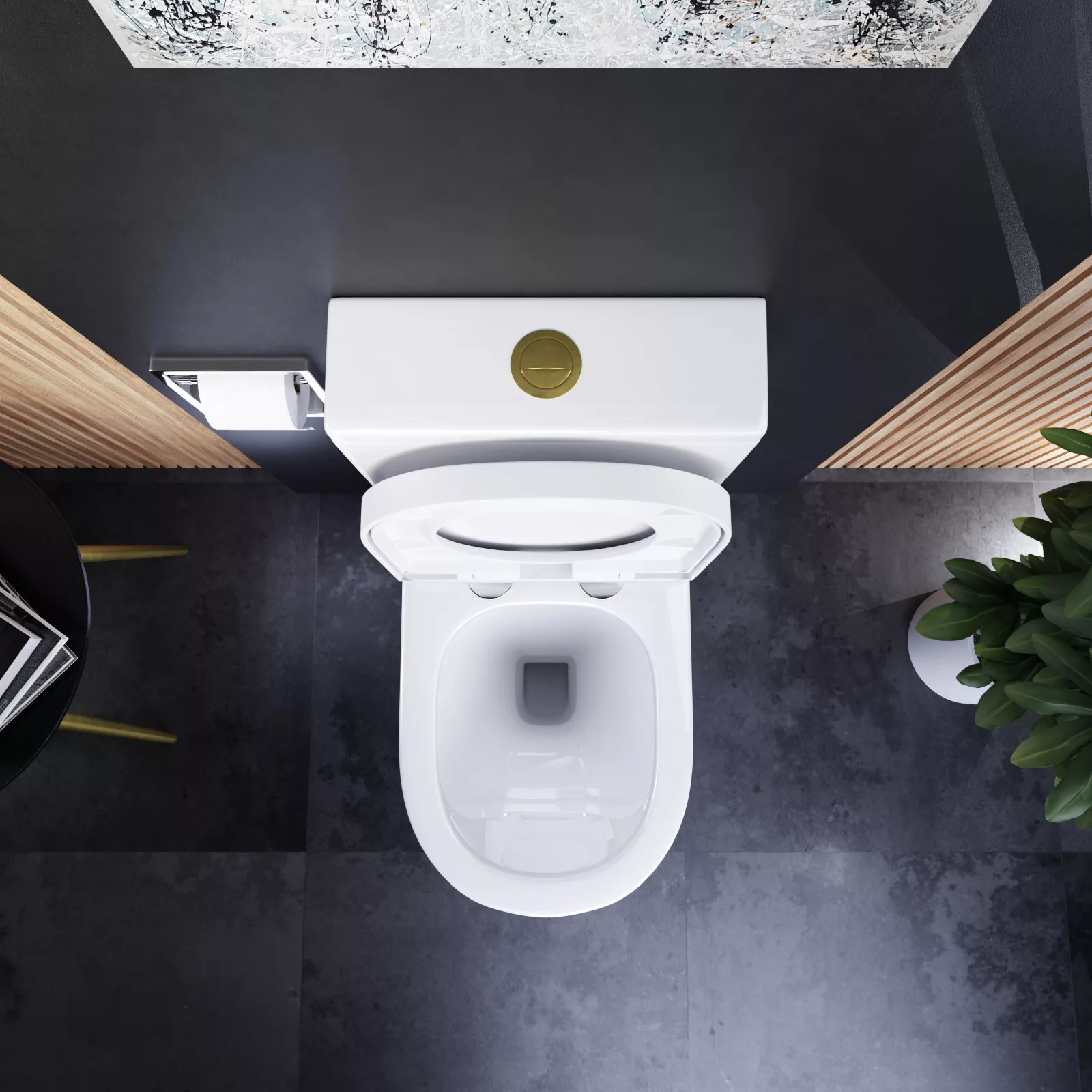 HD Dream Glossy White perem nélküli mély öblítésű íves monoblokkos WC alsó kifolyású compact "A" tetővel és fényes arany kiegészítőkkel + tartály
