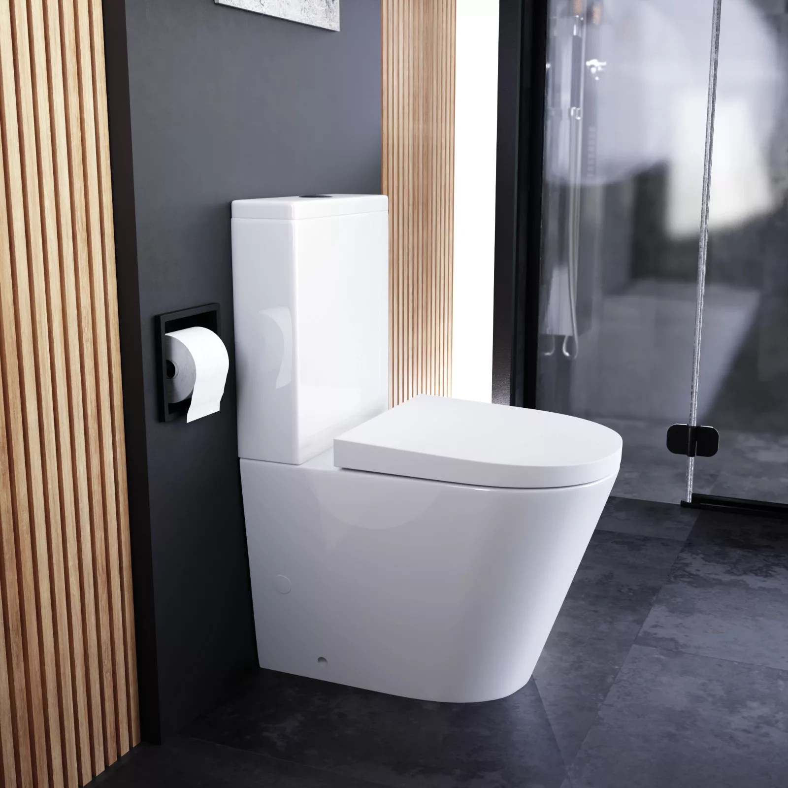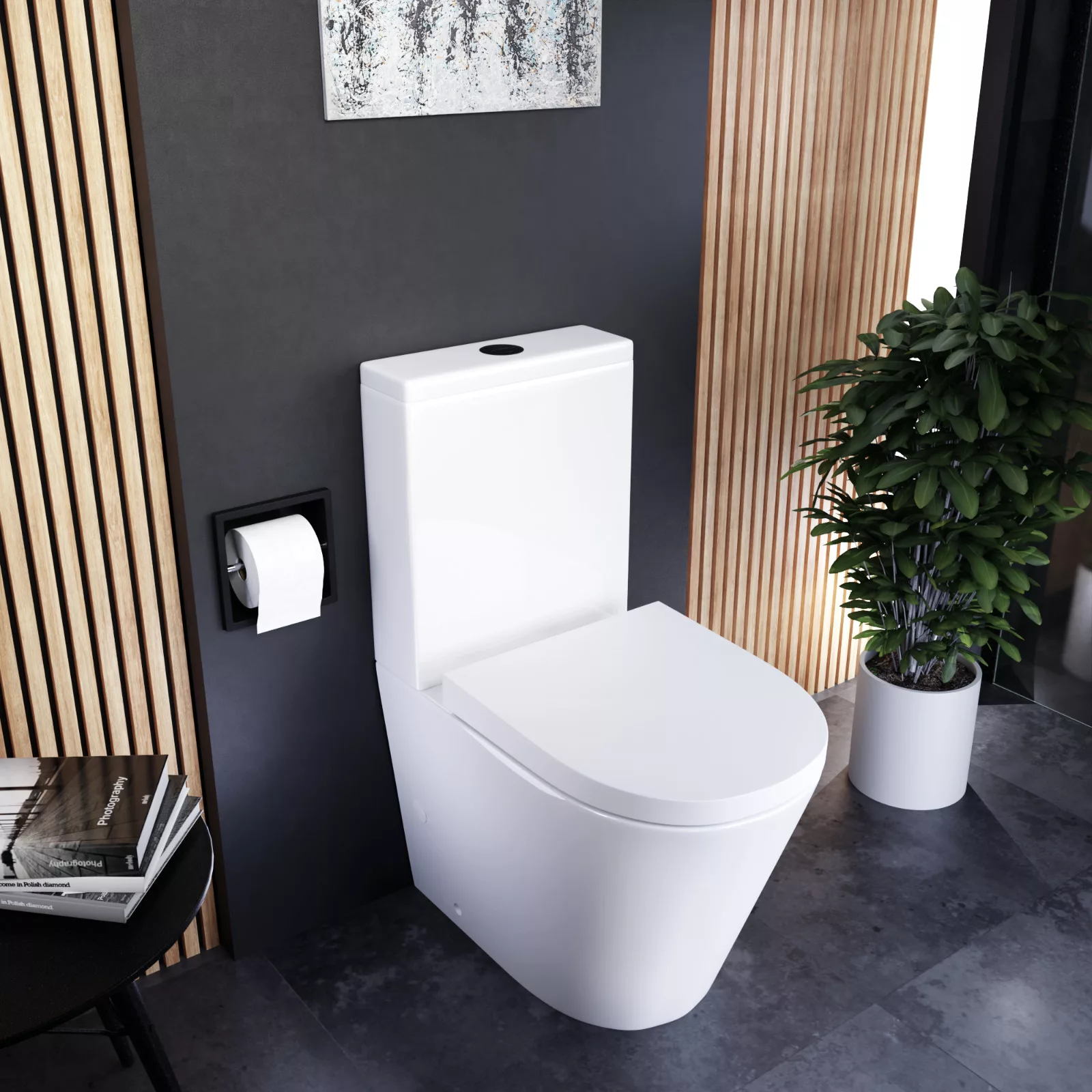 A slim/vékonyított kialakításű tetőnek köszönhetően a WC teljesen modern összképet mutat magáról, aminek hatására tökéletesen beleillik a mai modern fürdőszobák környzetébe.