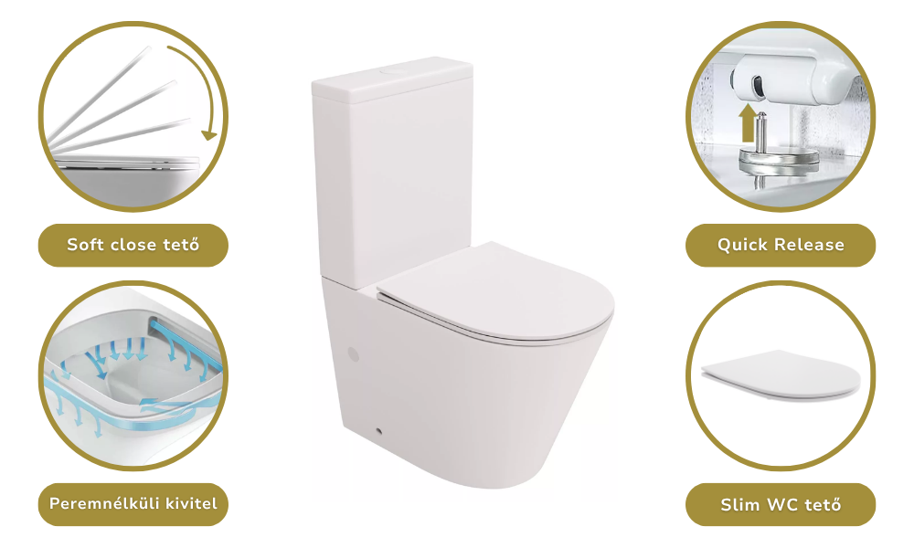 Nincsenek rejtett felületek, így a WC tisztántartása egyszerű és hosszútávon kényelmes.