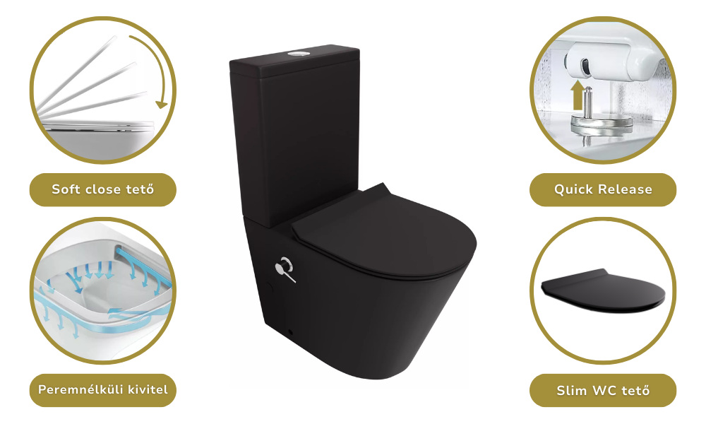 A Echo Matt Black monoblokkos WC elemei:
