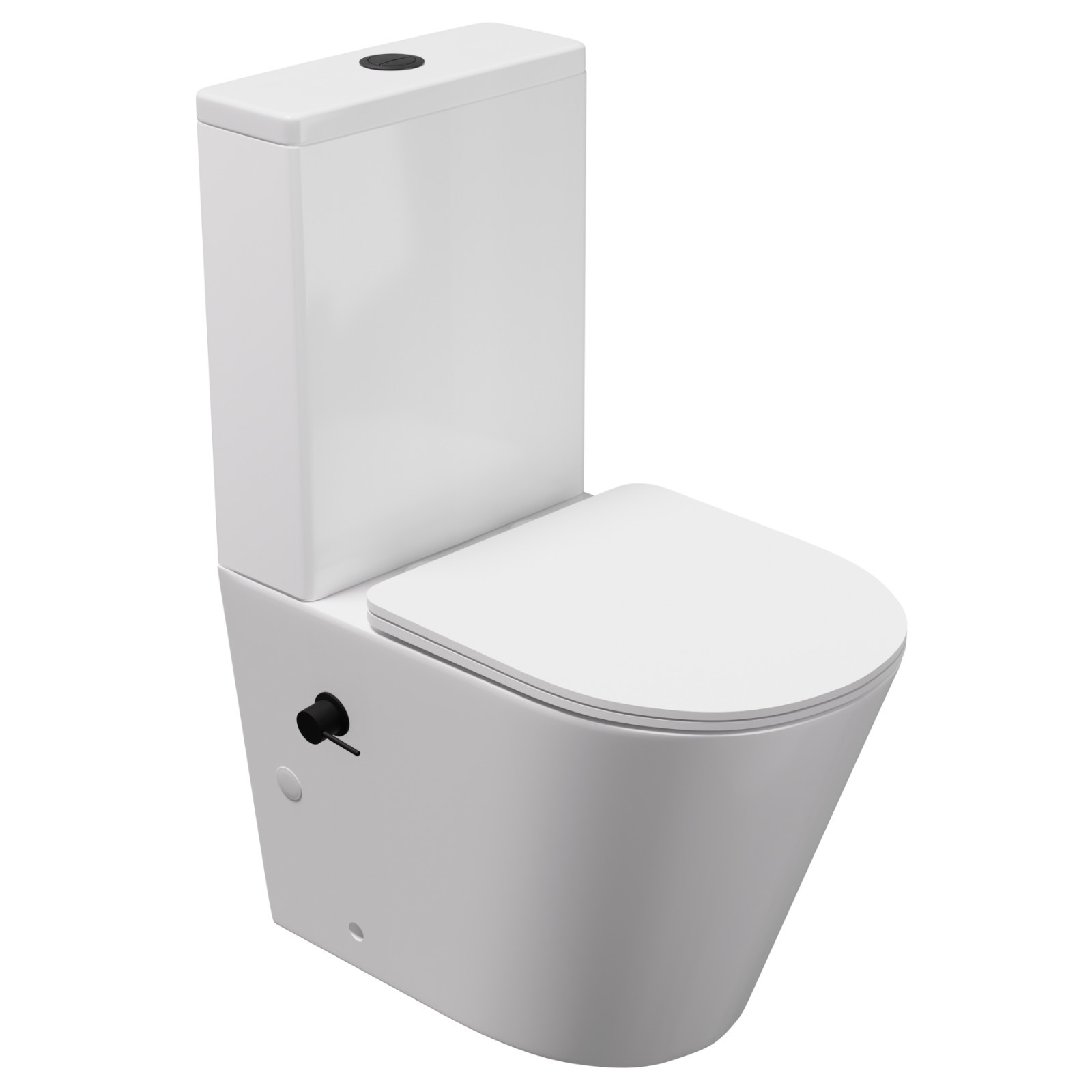 HD Echo White perem nélküli mély öblítésű íves monoblokkos WC alsó kifolyású, matt fekete bidé funkcióval, tető nélkül + tartály