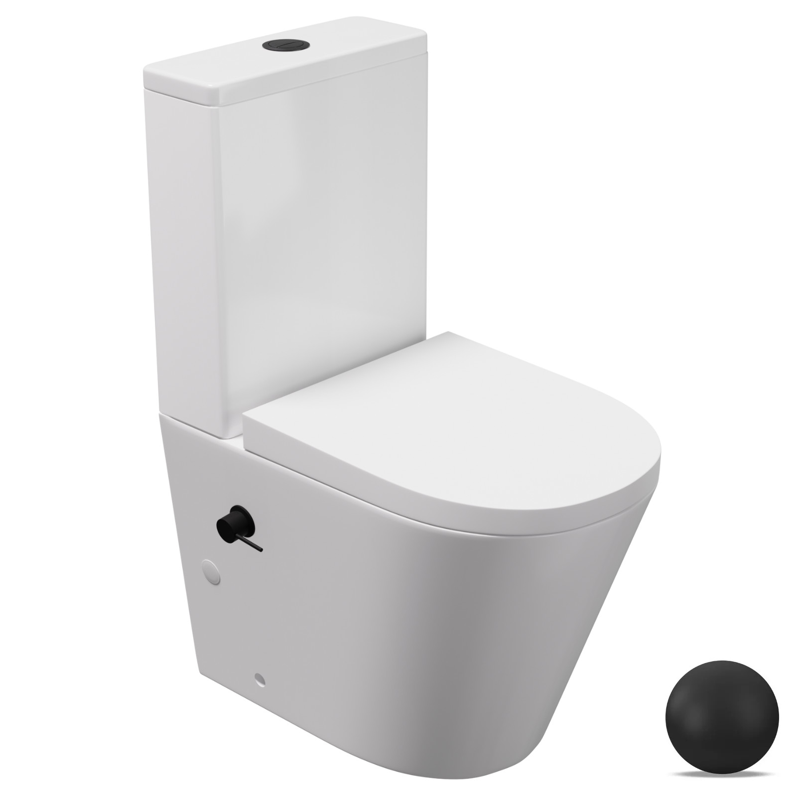 HD Echo White perem nélküli mély öblítésű íves monoblokkos WC alsó kifolyású, bidé funkcióval, compact "A" tetővel és matt fekete kiegészítőkkel + tartály