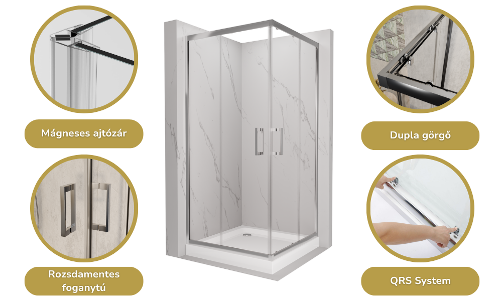 Az általunk legfontosabbnak vélt tulajdonságok szögletes zuhanykabinunknál: