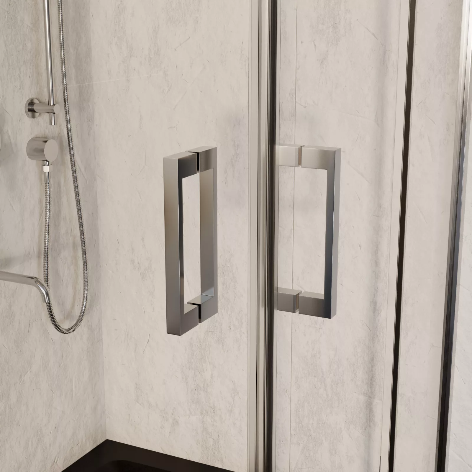 A zuhanykabin dupla görgőkkel kaphatóak, amiknek hatalmas előnye, hogy jobban eloszlik rajtuk a terhelés, mivel egy ajtó 2 pont helyett 4 ponton gördül végig. Ez nagy mértékben biztosítja az egyenletesebb, simább működést és a hosszabb élettartamot. A görgők további fontos tulajdonságai közé sorolható, hogy Quick Release Systemmel (QRS) ellátottak, aminek segítségével könnyedén fel- és leszerelhetőek a zuhanykabin ajtajai a könnyedebb tisztítás érdekében.