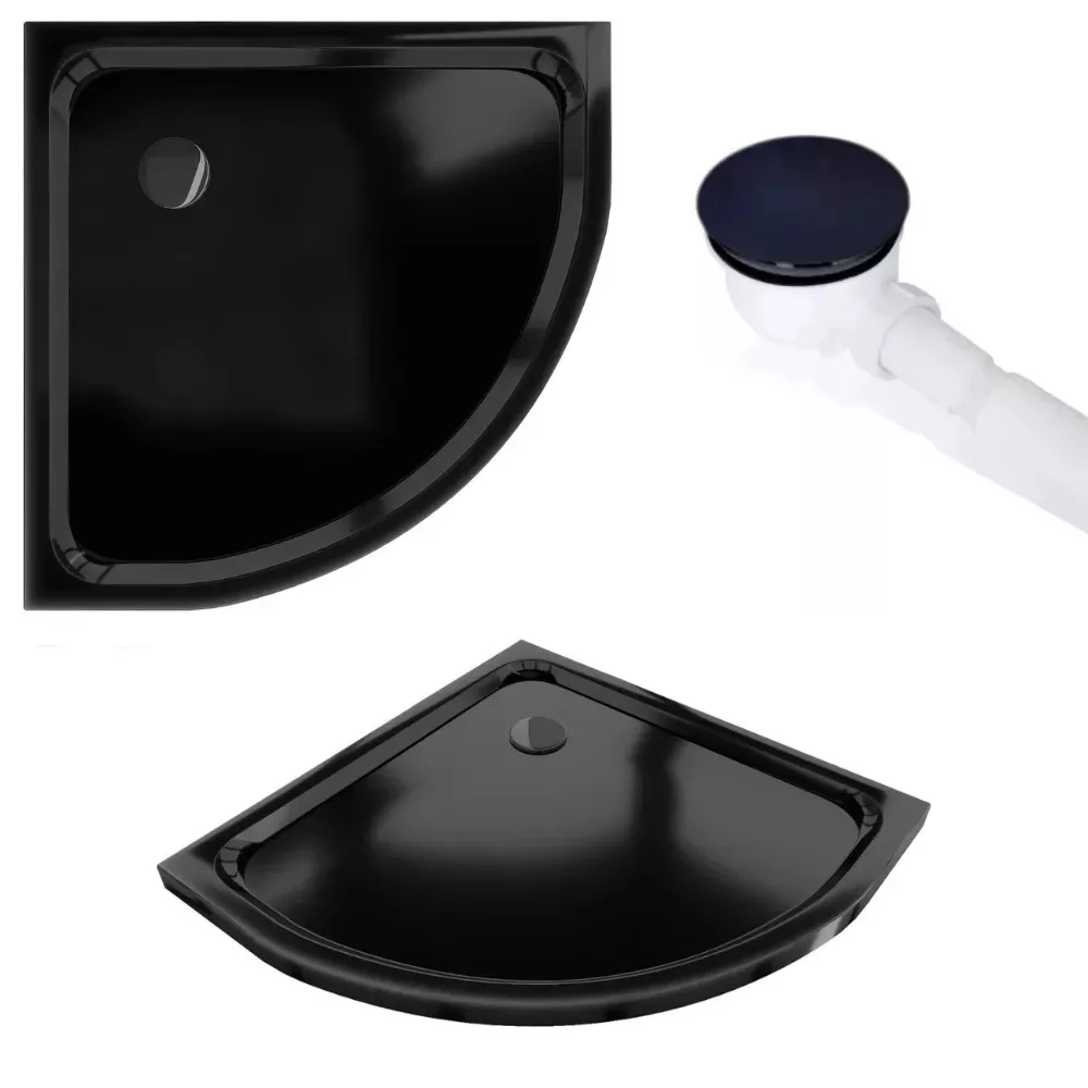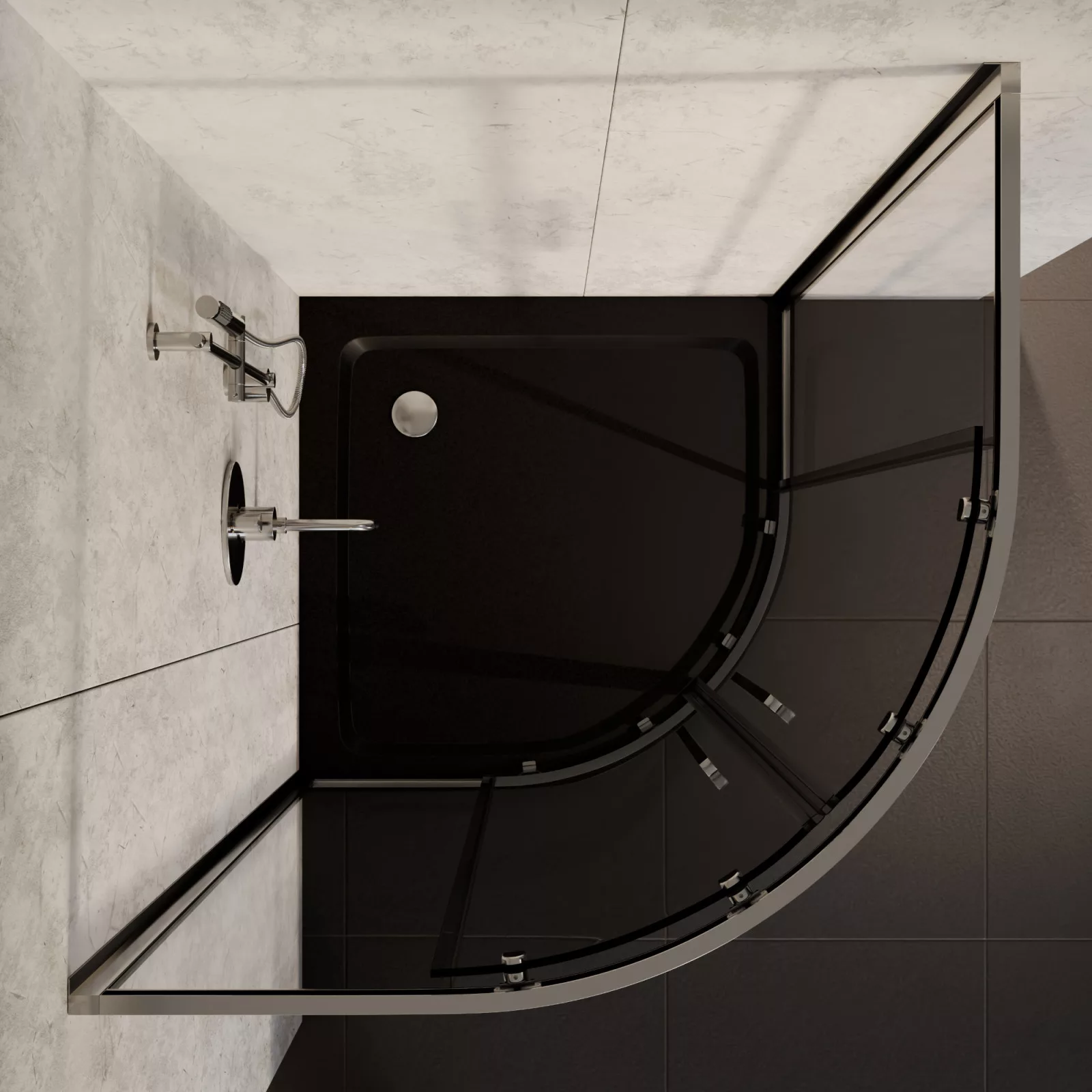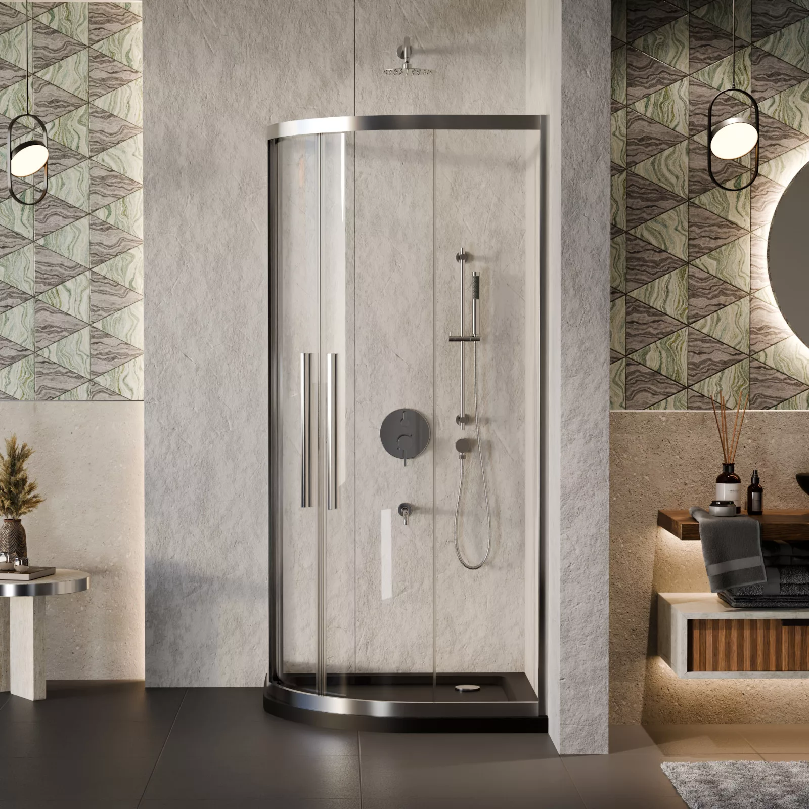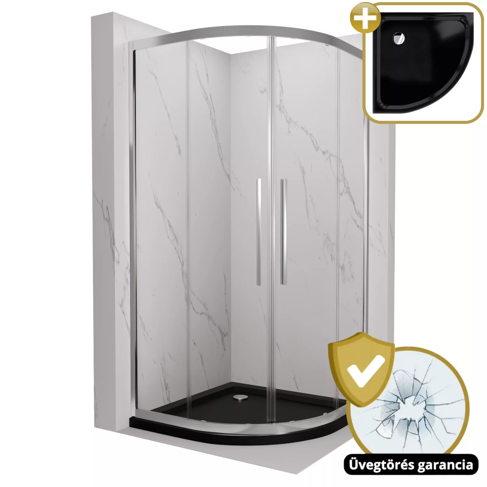 HD Elio+ 80x80 íves két tolóajtós zuhanykabin fekete slim zuhanytálcával és króm szifonnal