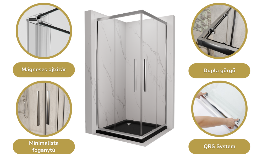 Az általunk legfontosabbnak vélt tulajdonságok szögletes zuhanykabinunknál: