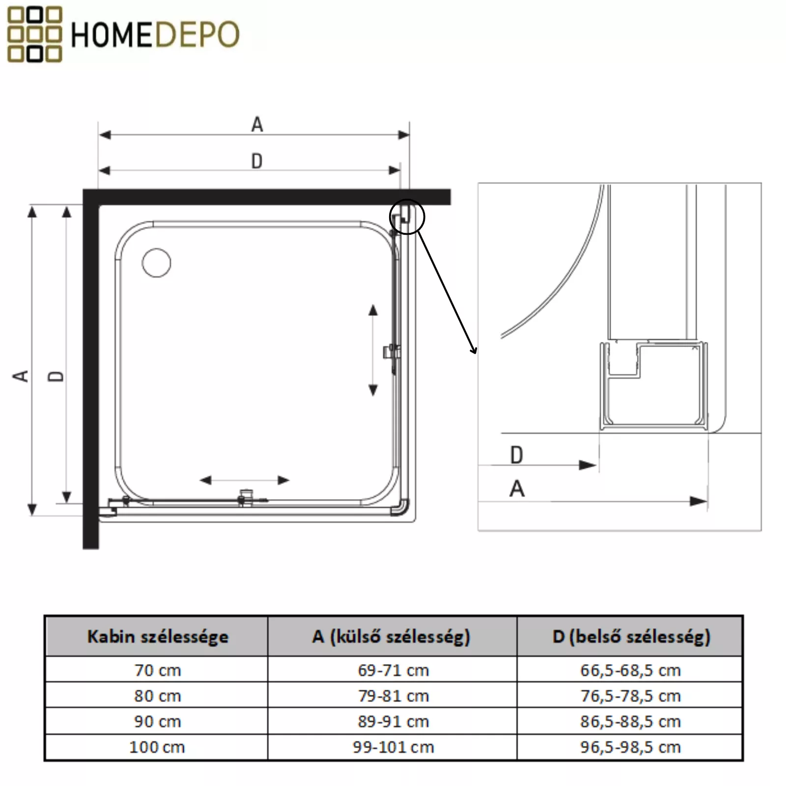 - Beépítési tartomány (küszöbbel): 79-81 cm x 79-81 cm