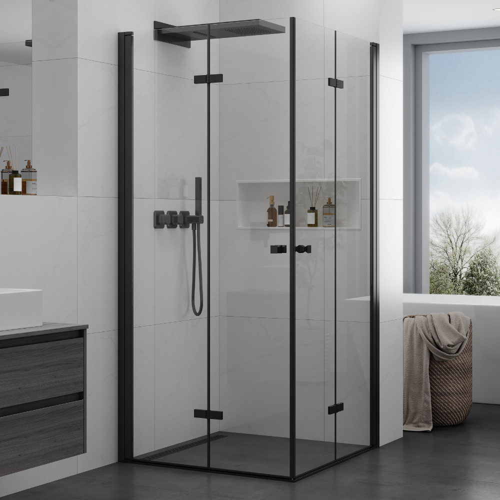 HD Felix Duo 100x70 összecsukható dupla nyílóajtós zuhanykabin fekete elemekkel