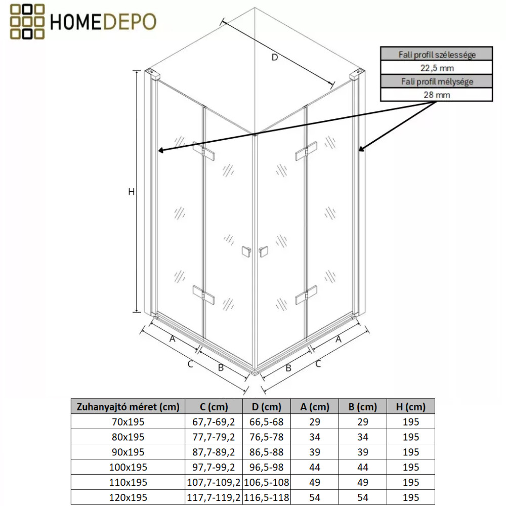 - Termék mérete: 80x70x195 cm