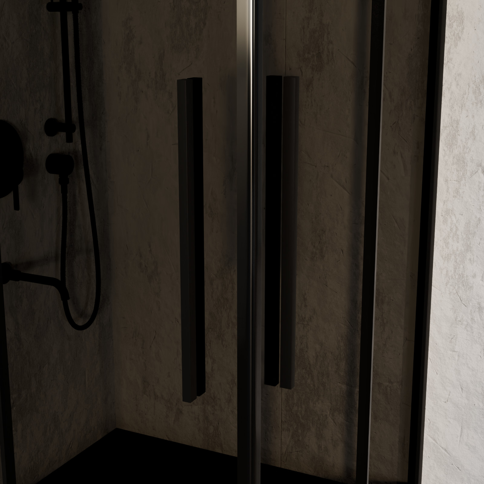 - Felszereltség: Fekete színű állítható alumínium profilok, polírozott minimalista fogantyú, vízzáró szilikon profilok, mágneses ajtózár
