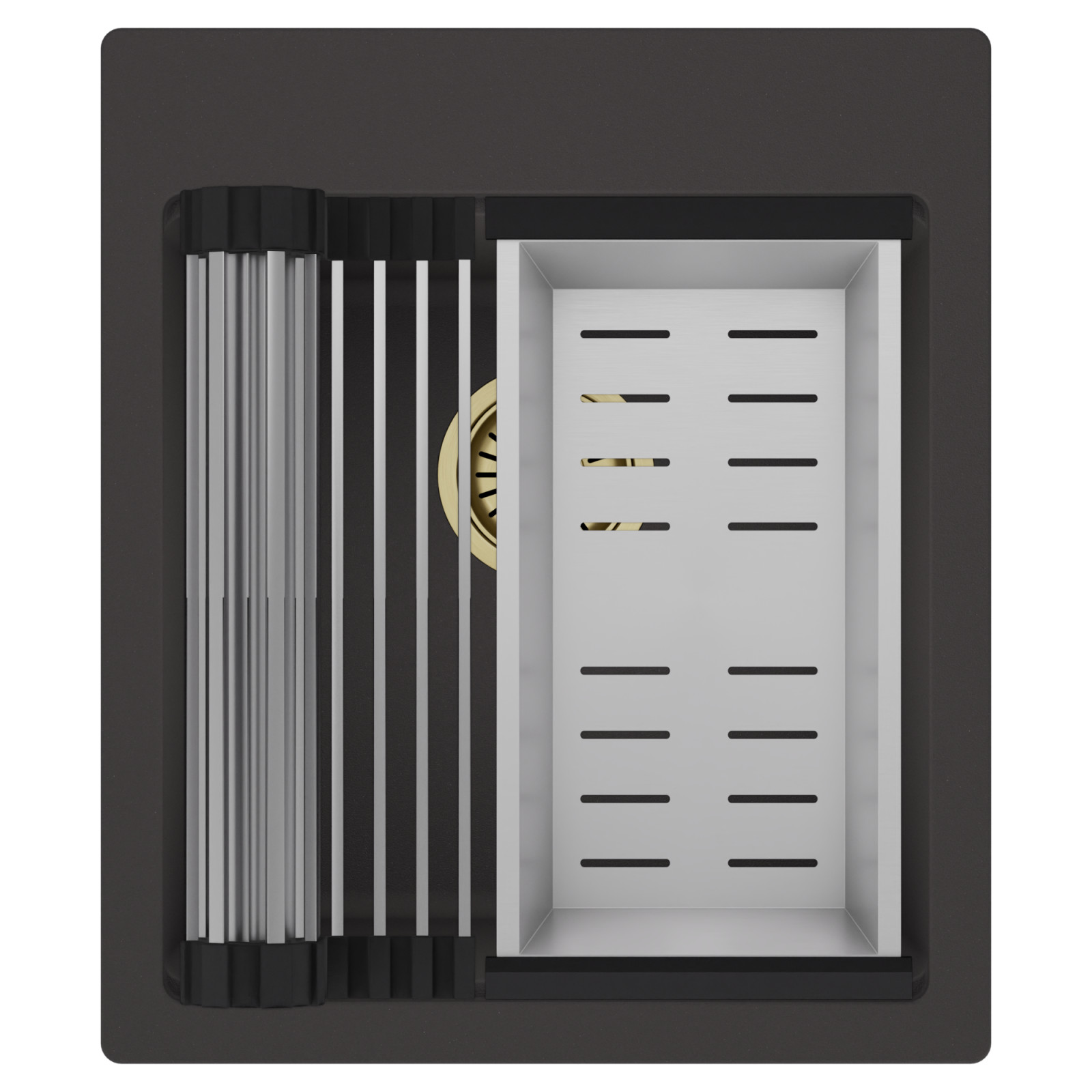 Termék mérete: 43x50 cm Szekrényméreti igény: 45 cm Medence mérete: 37x39x21,5 cm Medencék száma: Egymedencés Felhasználhatóság: Pultba építhető Könnyített fúratok száma: 3 Anyag: Gránit Anyagvastagság: 8-10 mm Tartozékok: Mosogatótálca, rozsdamentes acél csepegtetőrács és kosár, szifon - túlfolyóval és lefolyó takaróval Szifon szín: Szálcsiszolt arany Lefolyó takaró anyaga: Rozsdamentes acél HomeDepo SmartEdge Többfunkciós Peremrendszer