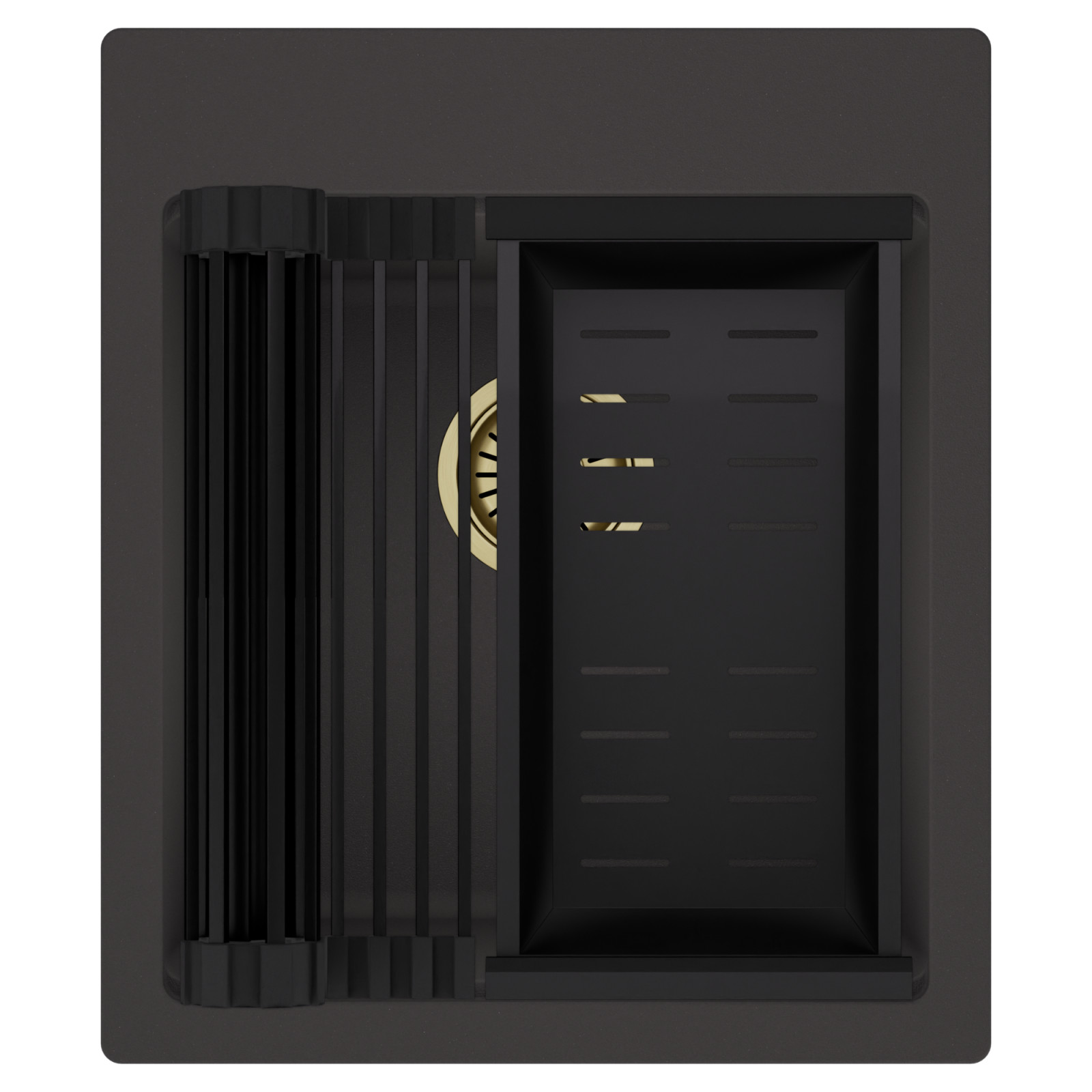 Termék mérete: 43x50 cm Szekrényméreti igény: 45 cm Medence mérete: 37x39x21,5 cm Medencék száma: Egymedencés Felhasználhatóság: Pultba építhető Könnyített fúratok száma: 3 Anyag: Gránit Anyagvastagság: 8-10 mm Tartozékok: Mosogatótálca, matt fekete csepegtetőrács és kosár, szifon - túlfolyóval és lefolyó takaróval Szifon szín: Szálcsiszolt arany Lefolyó takaró anyaga: Rozsdamentes acél HomeDepo SmartEdge Többfunkciós Peremrendszer