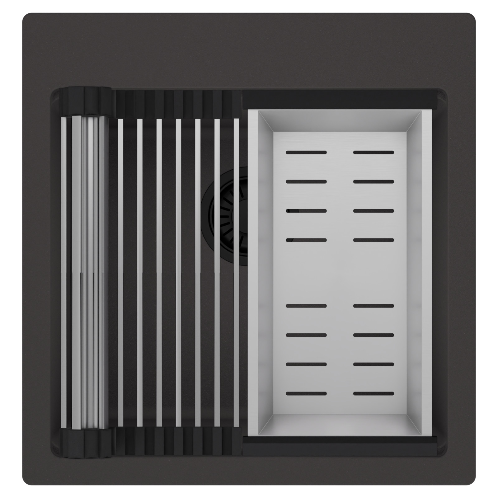HD Infinity 48 egymedencés mosogatótálca szett, csepegtetőráccsal és kosárral, matt antracit