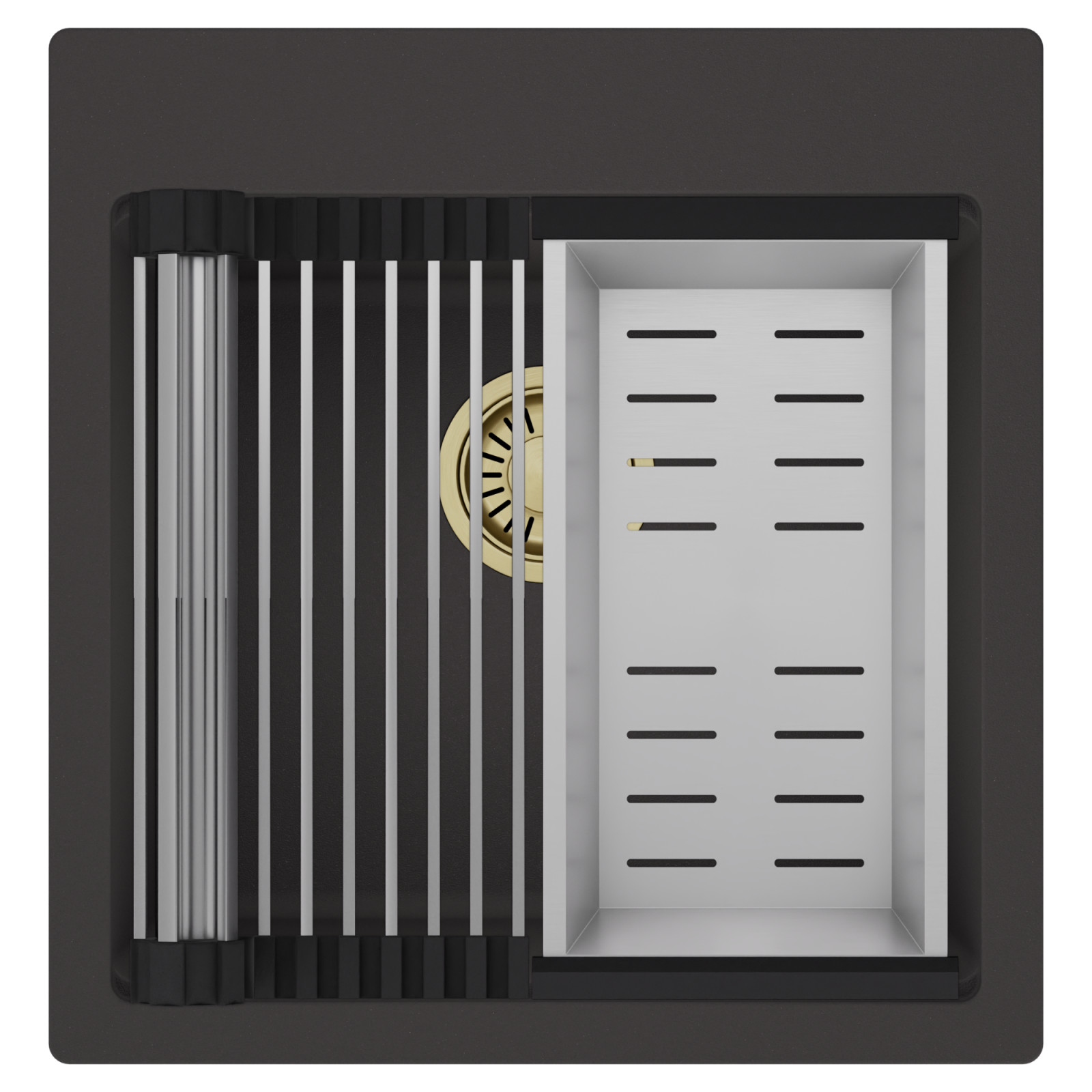 HD Infinity 48 egymedencés mosogatótálca szett, csepegtetőráccsal és kosárral, matt antracit