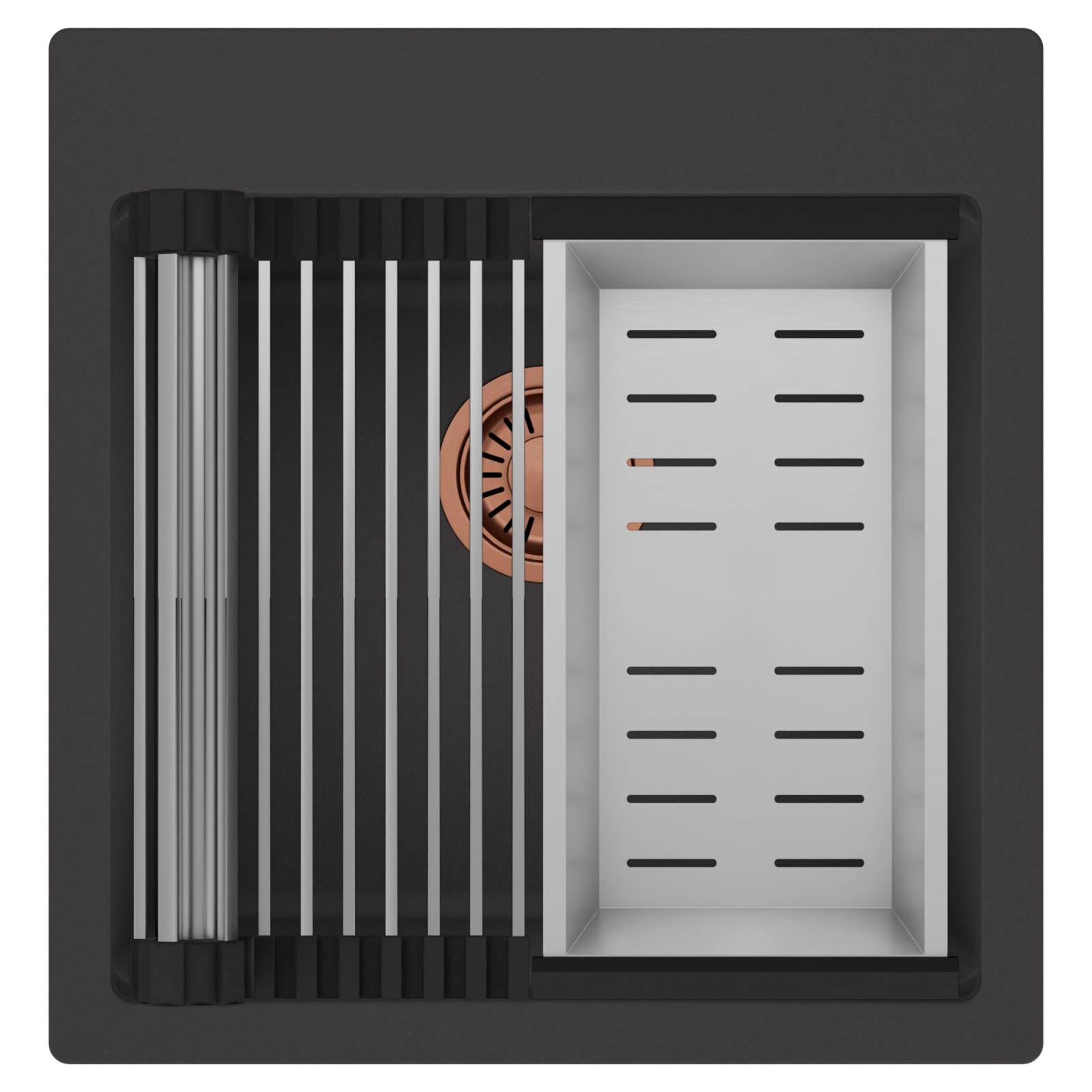 HD Infinity 48 egymedencés mosogatótálca szett, csepegtetőráccsal és kosárral, matt antracit